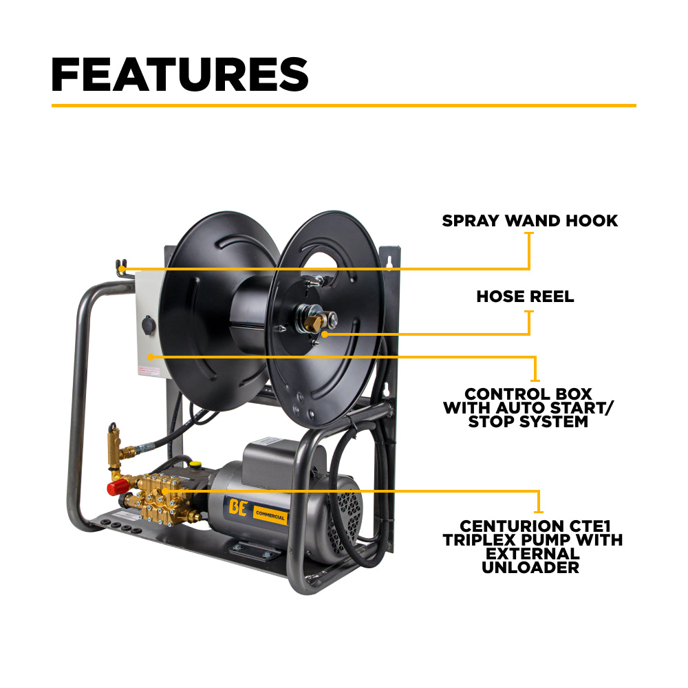 Nettoyeur haute pression électrique mural de 1 500 PSI - 2,0 GPM avec moteur Baldor et pompe AR Triplex