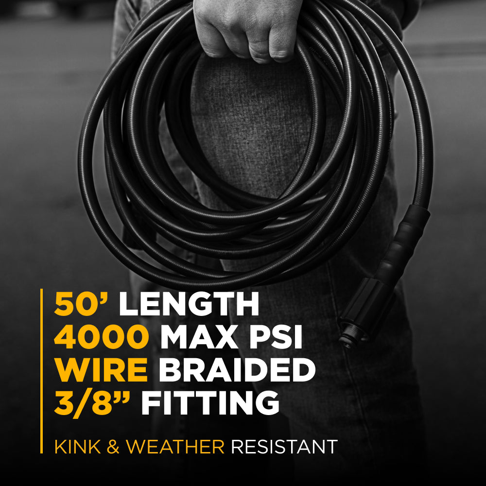 Tuyau en caoutchouc de 50 pieds, 4 000 PSI, 3/8 po