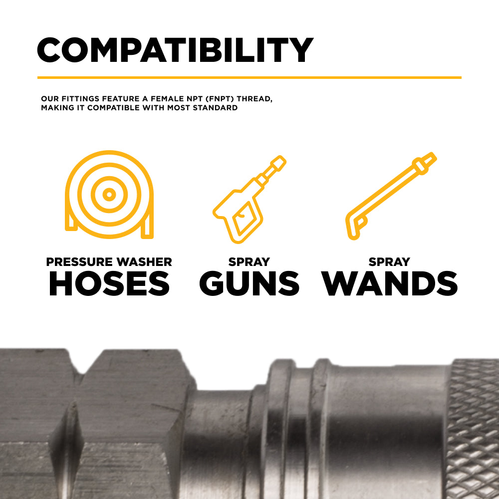 Universal compatibility – fits most 3/8" FNPT pressure washer systems.