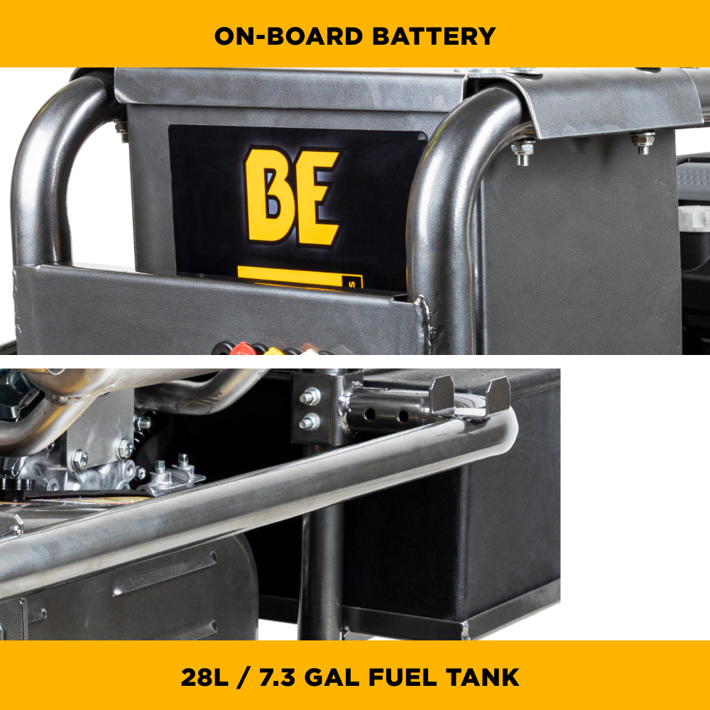 The BE Power Equipment B5024HEBAS 5,000PSI/5.0GPM Pressure washer is a 4 wheeled cold water machine for commercial applications. The unit is built on a powder coated frame with integrated role cage, including a lift point making it ideal for rough industrial environments.