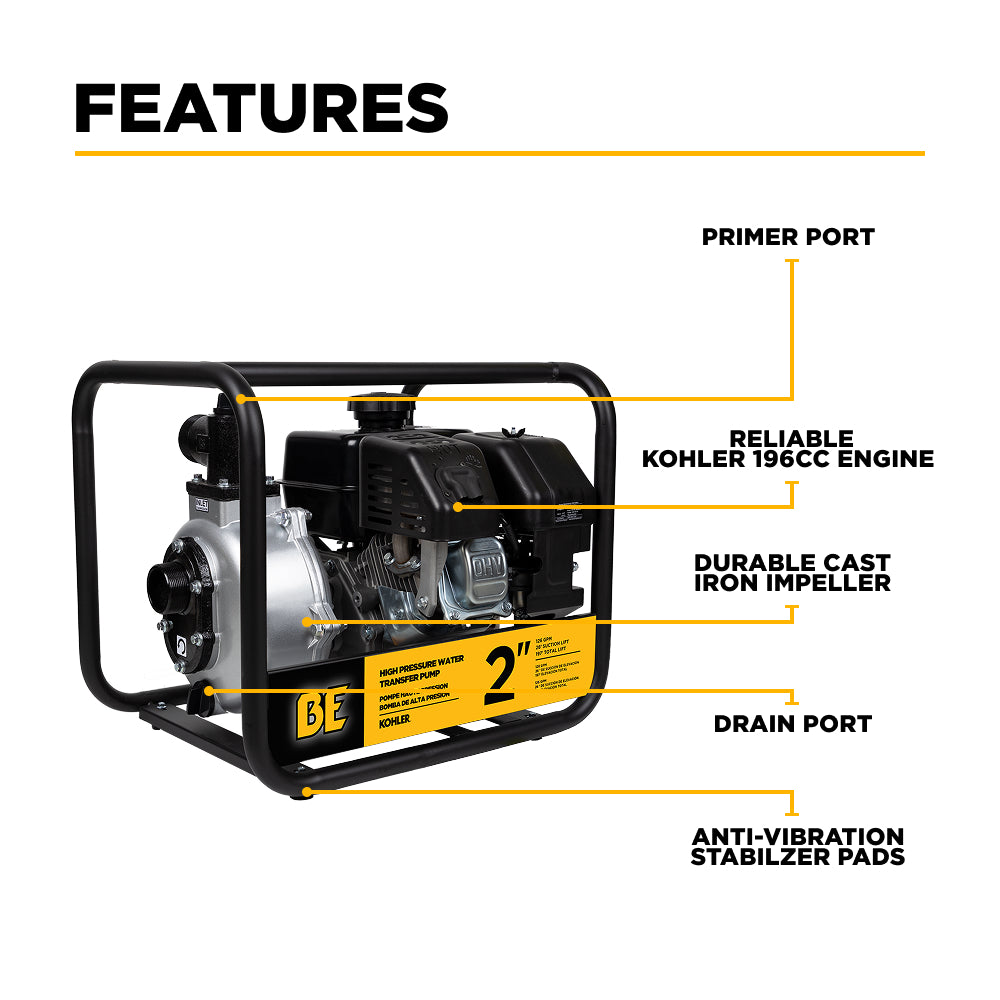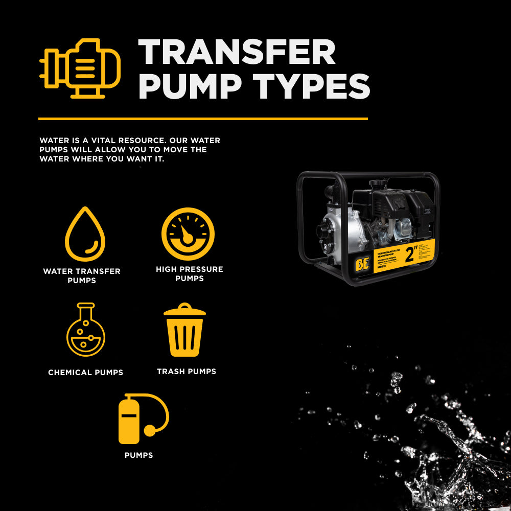 BE Power Equipment water transfer pumps are ideal for moving clean or lightly dirty water—perfect for draining flooded areas, filling livestock tanks, irrigating fields, and transferring water between containers or holding tanks.