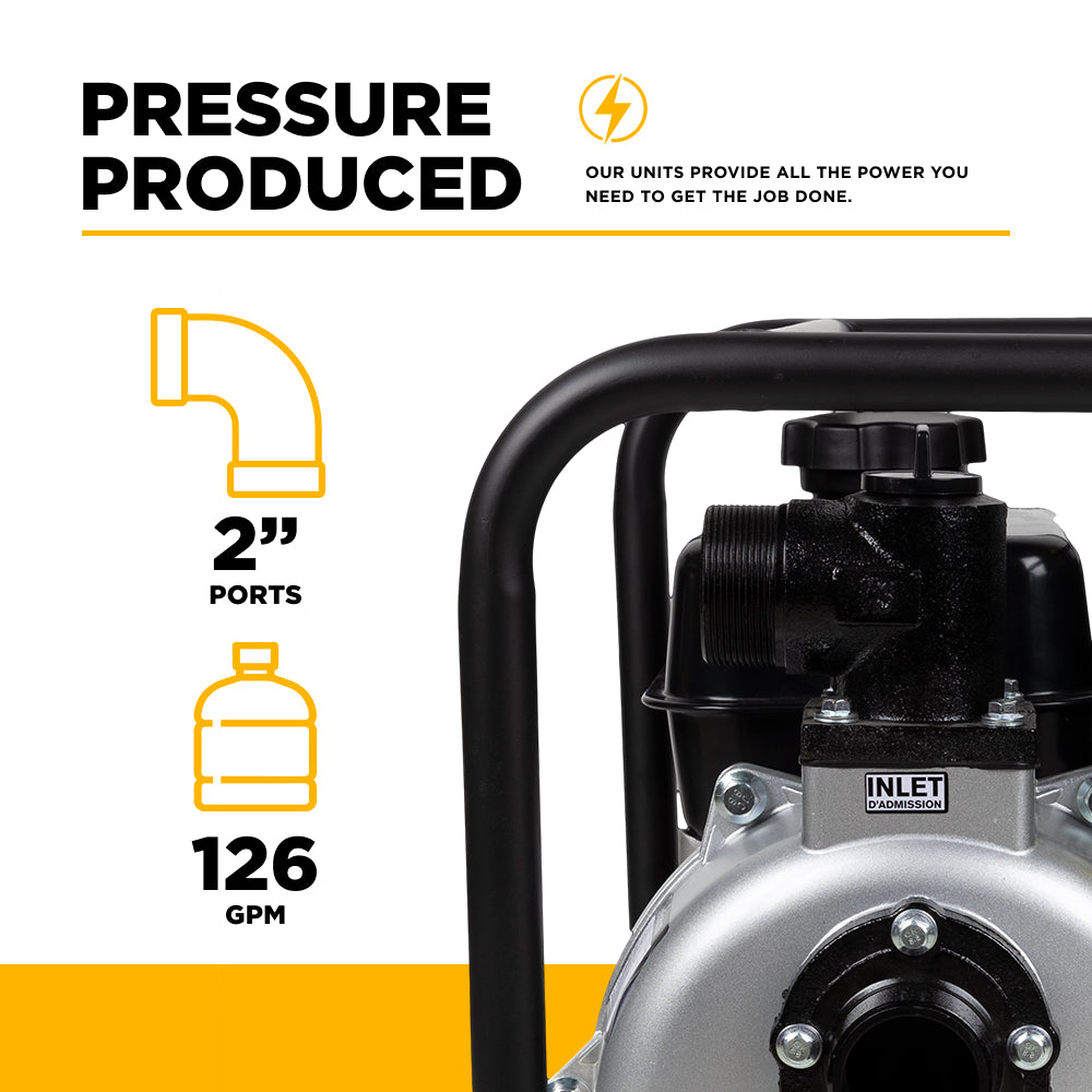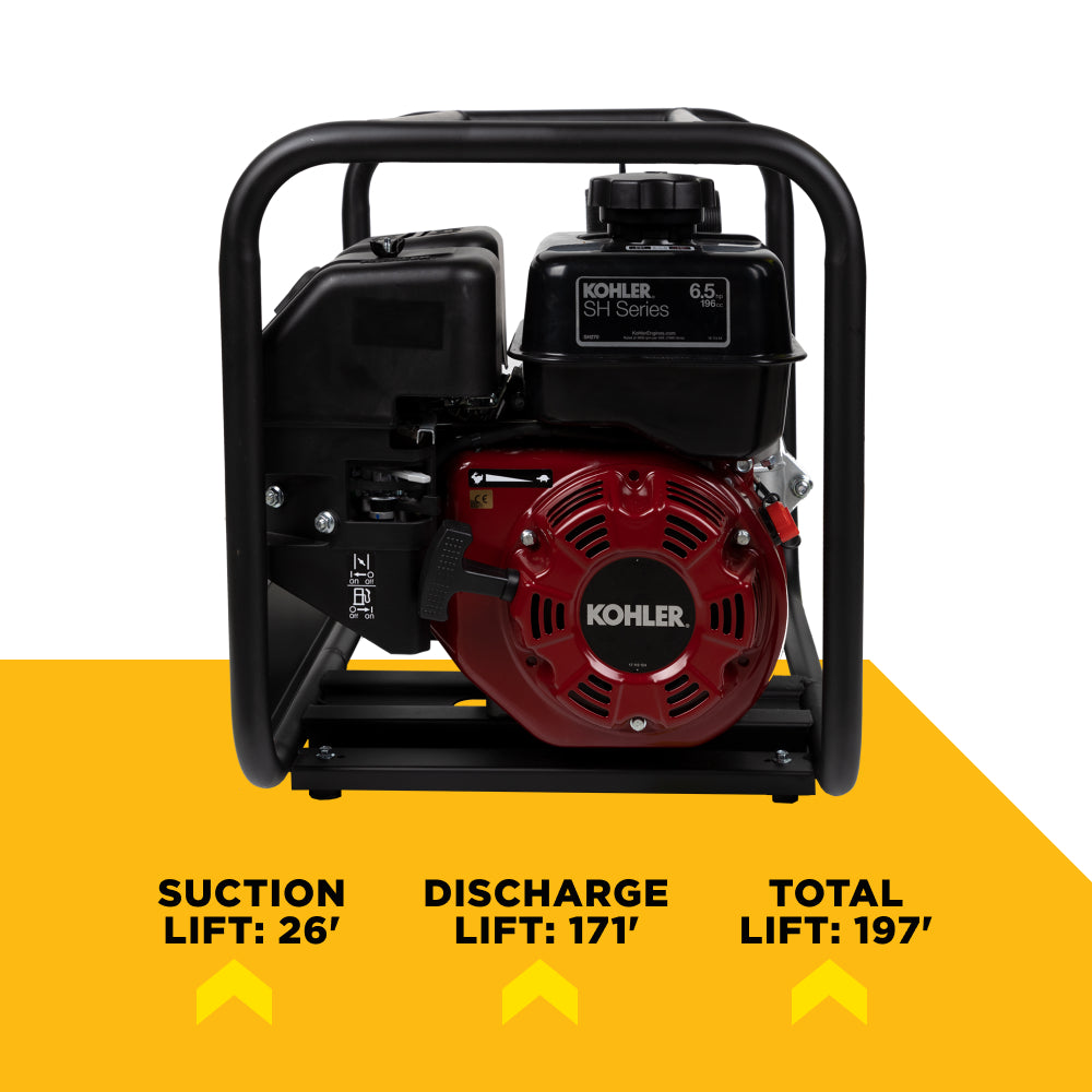 Pompe de transfert d'eau haute pression de 2 pouces avec moteur Kohler SH270