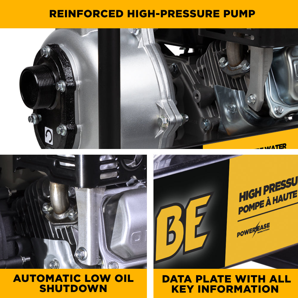 BE water transfer pumps are powered by reliable Powerease or Honda gas engines, offering consistent performance, easy starting, and long service life.
