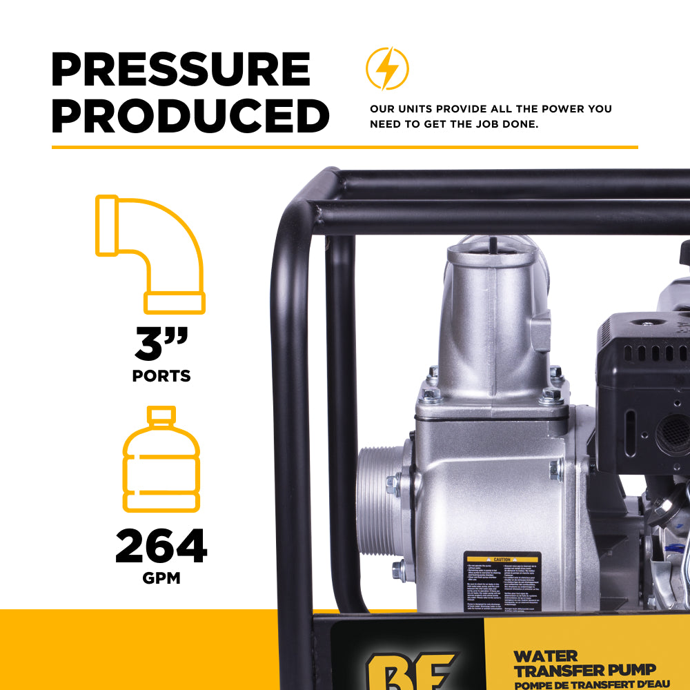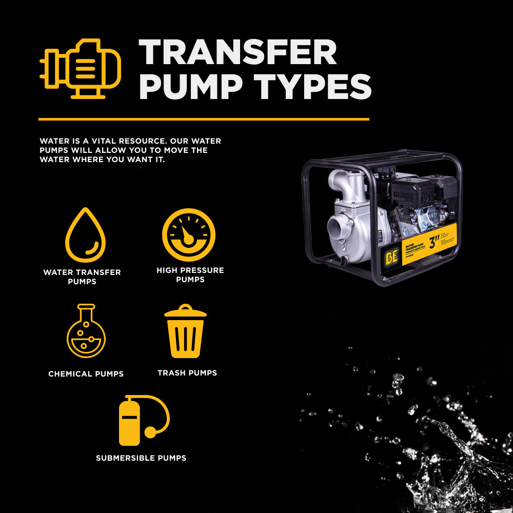 BE Power Equipment water transfer pumps are ideal for moving clean or lightly dirty water—perfect for draining flooded areas, filling livestock tanks, irrigating fields, and transferring water between containers or holding tanks.