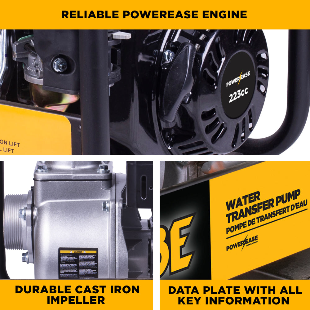 Pompe de transfert d'eau de 3" avec moteur Powerease 225