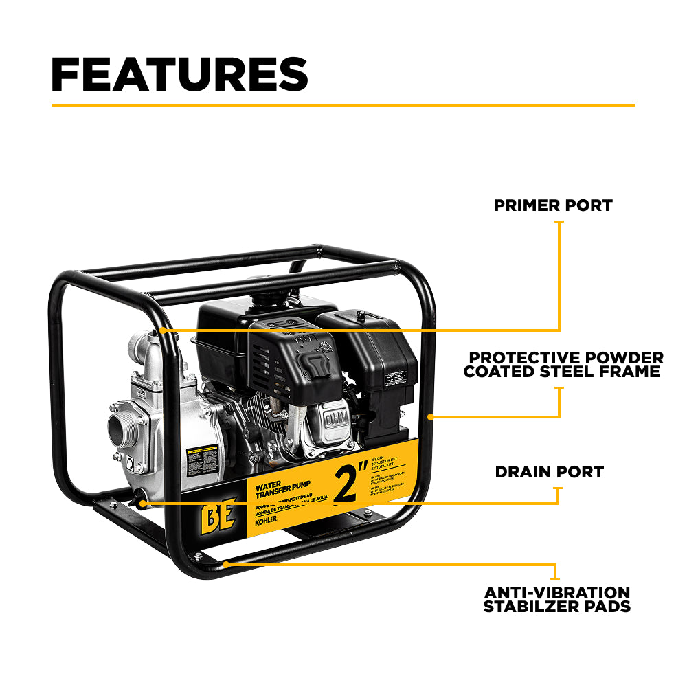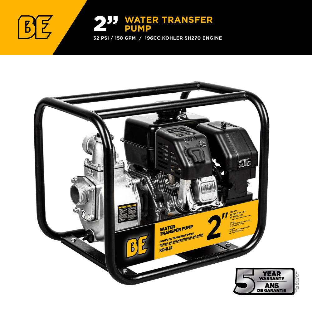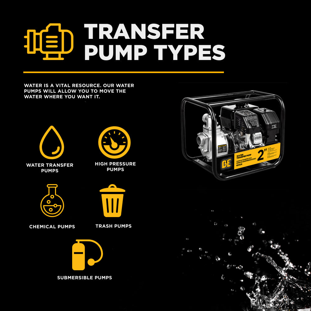 BE Power Equipment water transfer pumps are ideal for moving clean or lightly dirty water—perfect for draining flooded areas, filling livestock tanks, irrigating fields, and transferring water between containers or holding tanks.