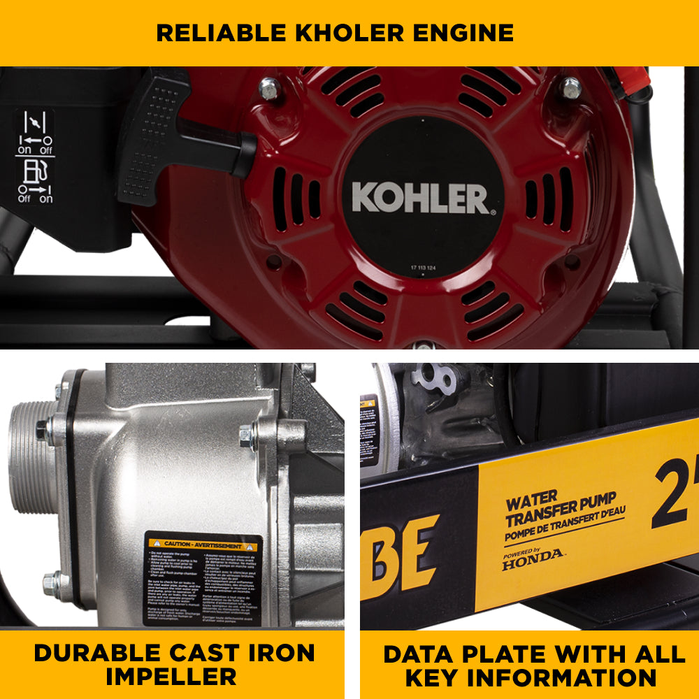 Le moteur Kohler robuste entraîne la pompe avec beaucoup de puissance.