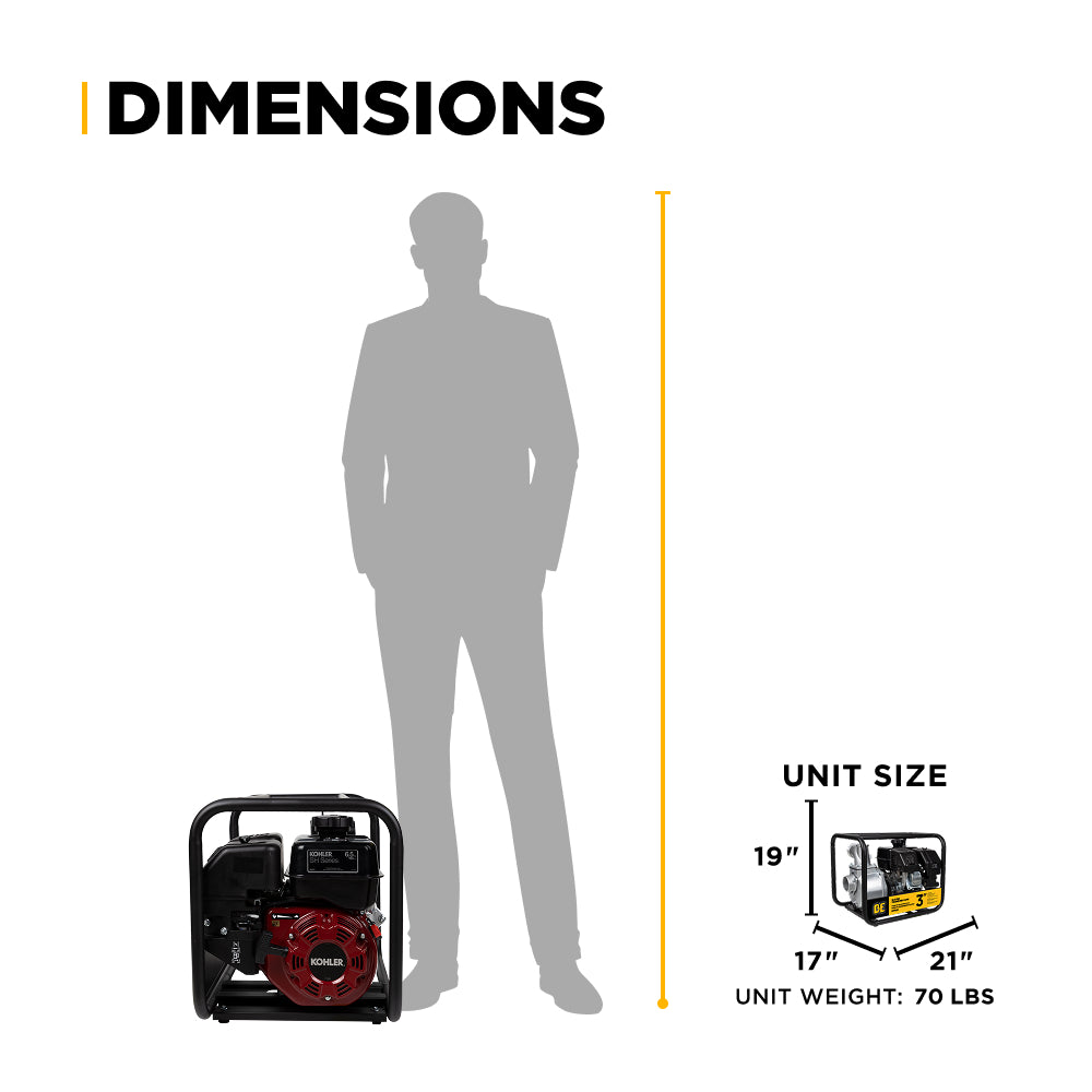 Pompe de transfert d'eau de 3" avec moteur Kohler SH270