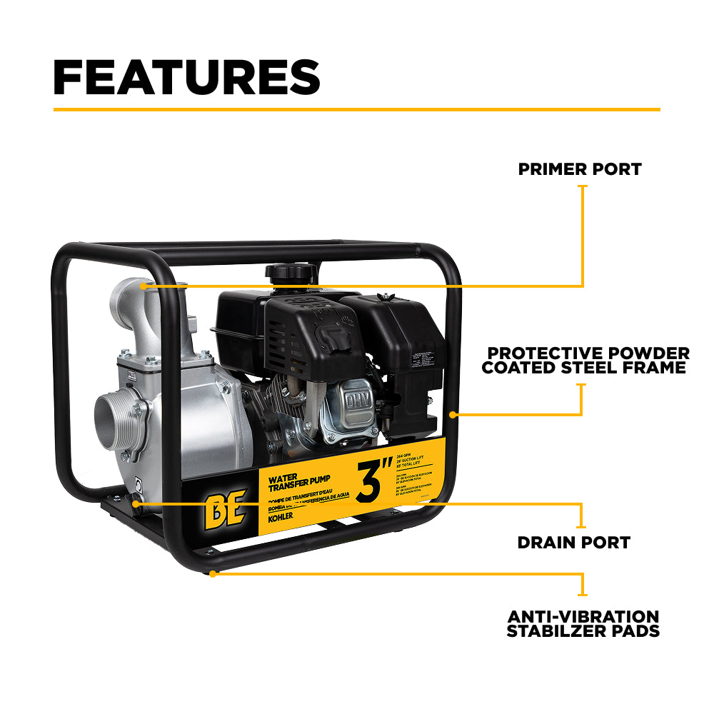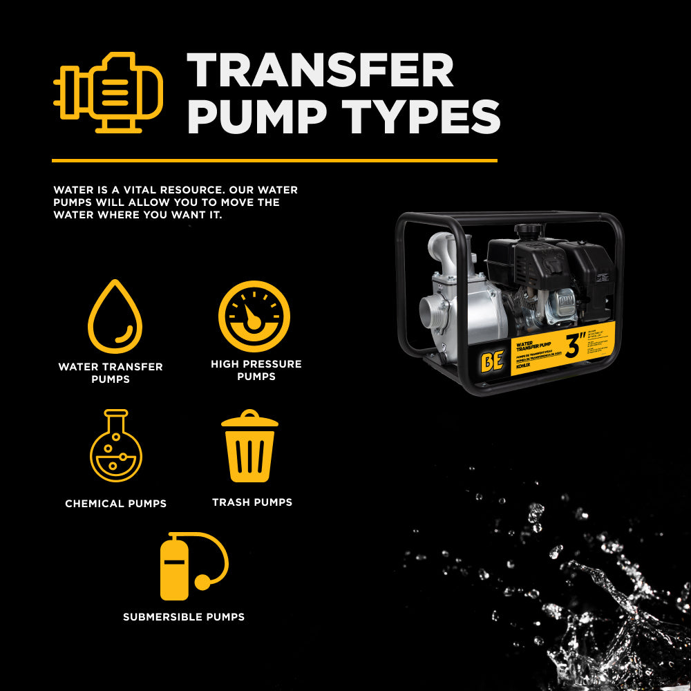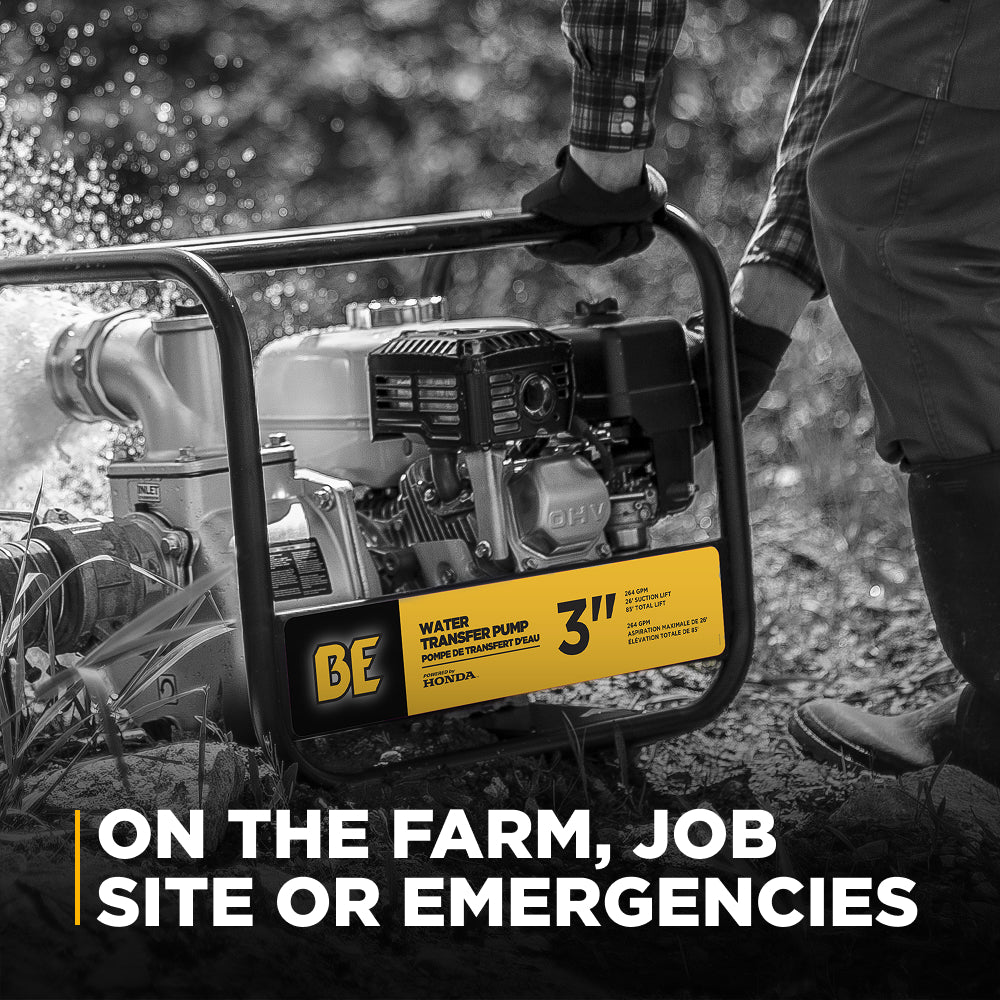 BE Power Equipment water transfer pumps are ideal for moving clean or lightly dirty water—perfect for draining flooded areas, filling livestock tanks, irrigating fields, and transferring water between containers or holding tanks.