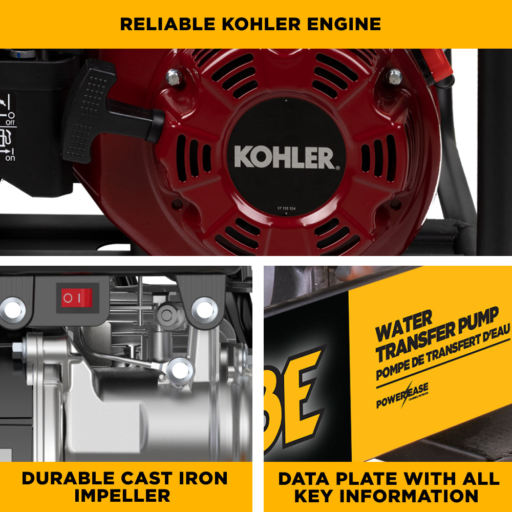 Le moteur Kohler robuste entraîne la pompe avec beaucoup de puissance.
