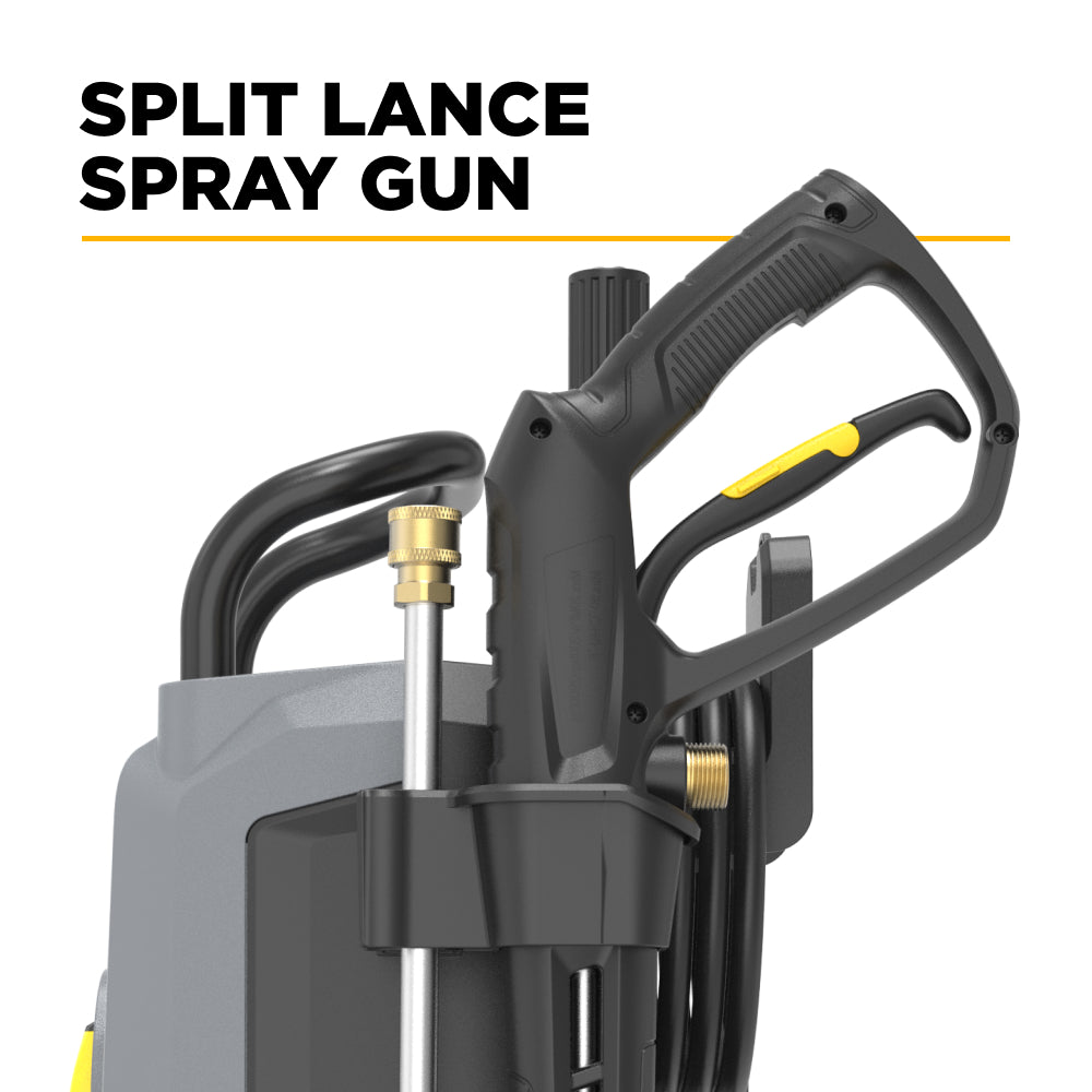 Compatible with foam cannons, soap dispensers, and other standard accessories, it gives you flexibility across every cleaning scenario. Its induction motor is quiet enough for residential areas and powerful enough for small commercial jobs, making it ideal for pressure washing tasks around the house.