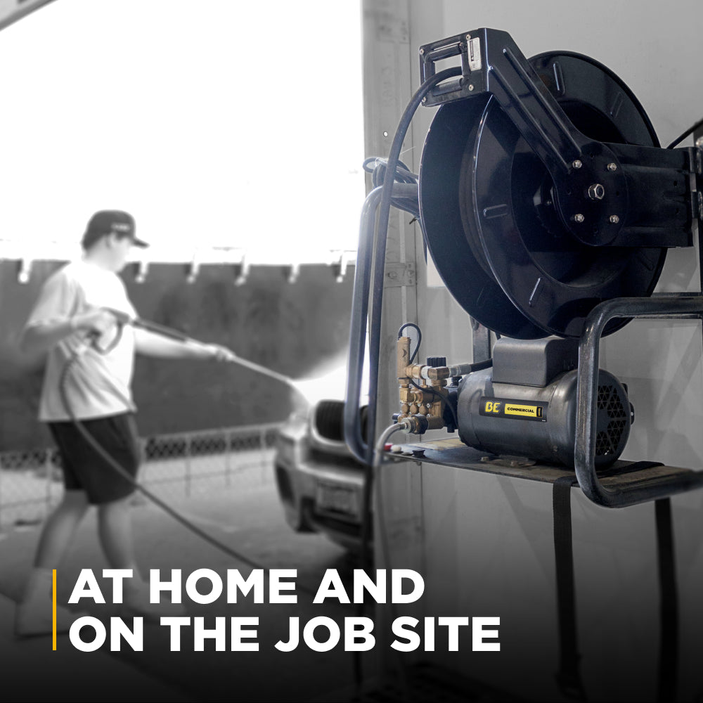 Weekly inspect the pump and motor for unusual noise or vibration and the hose reel for smooth operation. Periodically inspect the high-temp seals and replace if you see any leaks or loss of pressure. The direct drive design and quality components mean maintenance is easy and requires minimal downtime.