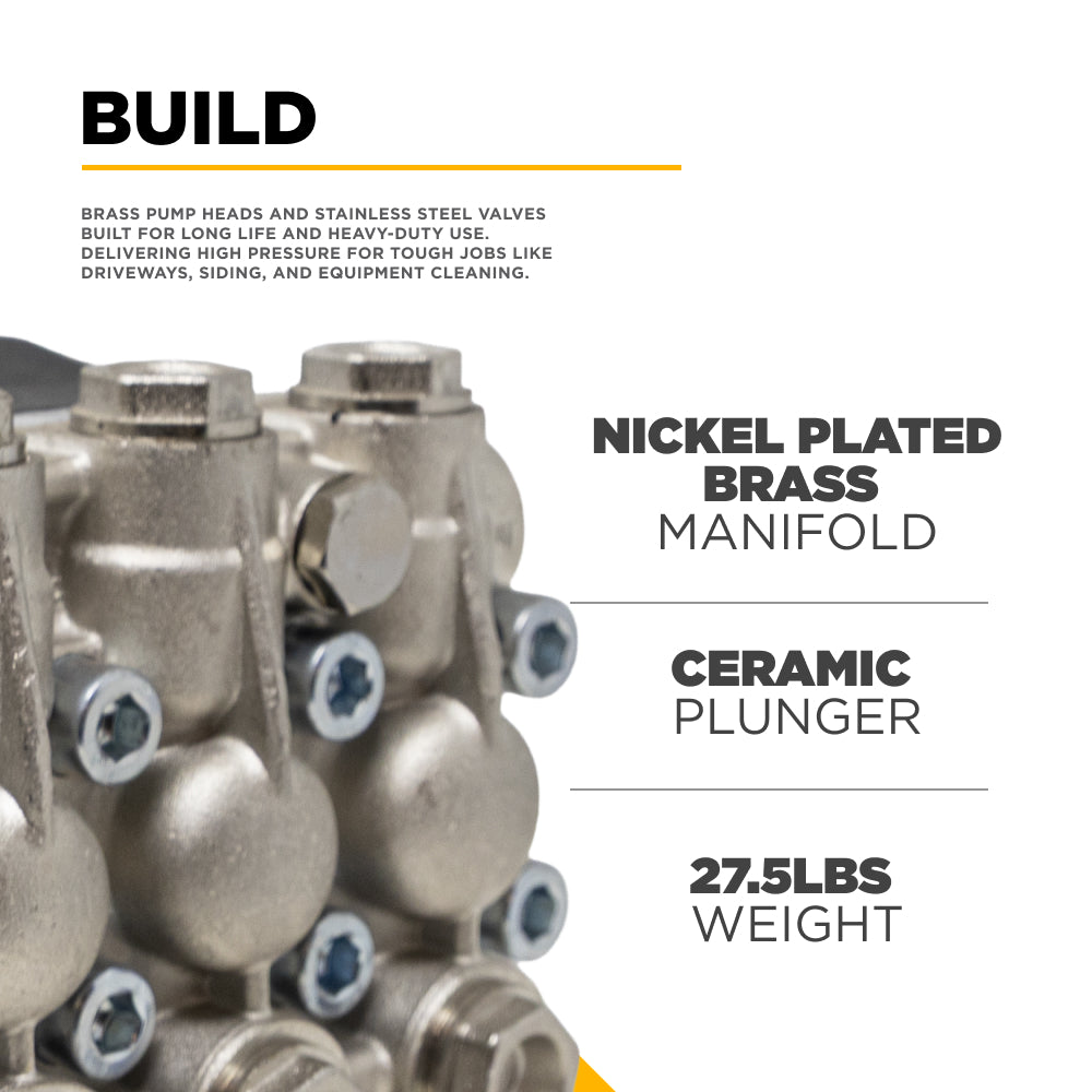The nickel-plated brass manifold is built for longevity in harsh environments. Nickel plating provides an extra layer of protection against corrosion, oxidation, and chemical exposure, making the pump ideal for industrial use, including chemical washdowns and marine applications. Unlike cheaper aluminum components, the brass body ensures rigidity and perfect sealing under high pressure.