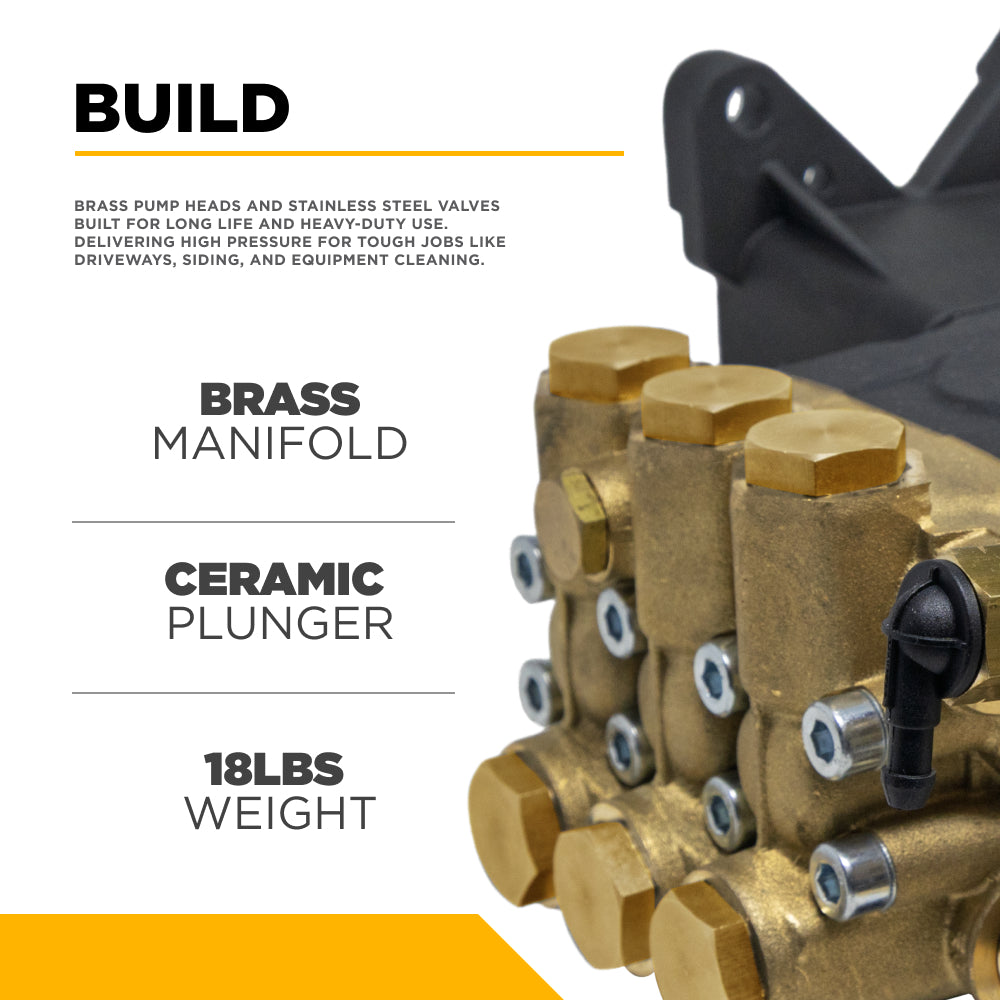 Operating at 3,450 RPM, this pump is designed to mount directly to gas-powered engines with a 1-inch shaft, transferring power efficiently for minimal energy loss. The result is a compact, highly efficient pump capable of tackling the toughest cleaning jobs without sacrificing reliability or performance.