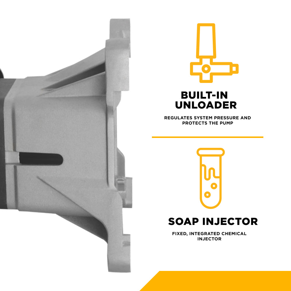Fixed soap injector allows operators to easily apply detergents and chemicals with low-pressure nozzles.