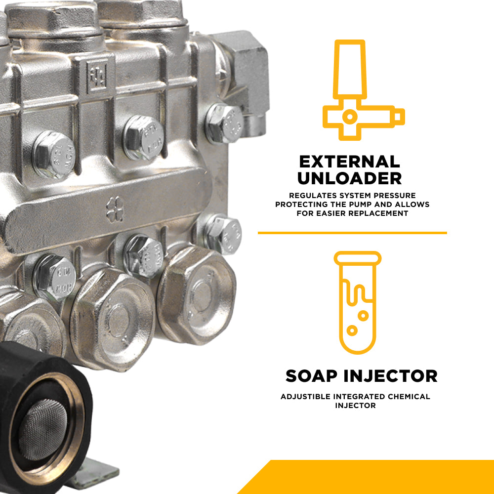 Manufactured by Annovi Reverberi (AR), a global leader in pressure washer pump engineering, the XW3028N is built with a brass manifold, ceramic plungers, and a low-RPM belt-drive system to maximize durability while reducing heat and wear. Its external unloader system, adjustable soap injector, and thermal relief protection make it both powerful and safe to operate in heavy-duty environments. Backed by a 5-year warranty, this pump is a professional solution for long-term reliability.