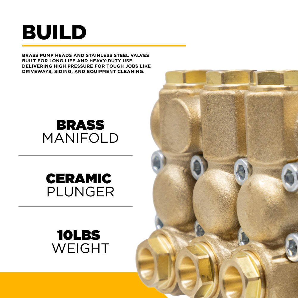 • Long-lasting ceramic plungers that won't give up, and a brass manifold for that extra bit of robustness