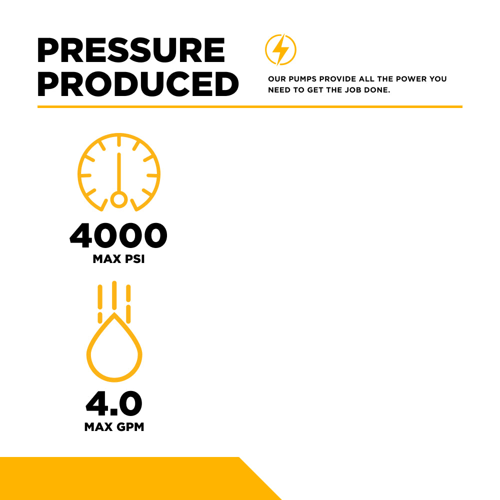 • Pressure / Flow: The P8 can produce 4,000 PSI at 4.0 GPM.
