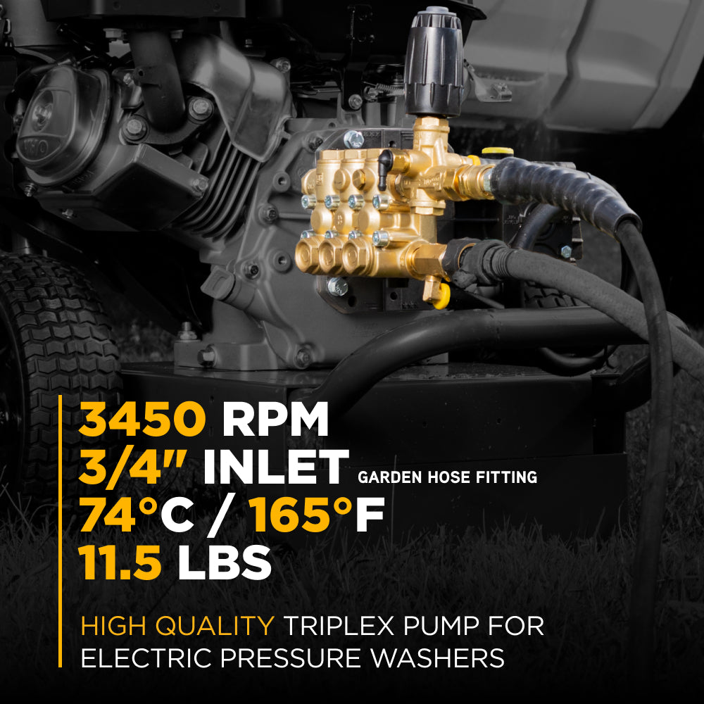 Its 3/4” shaft size ensures compatibility with a wide range of electric motor setups, making it an excellent replacement pump for high-performance electric pressure washer systems.