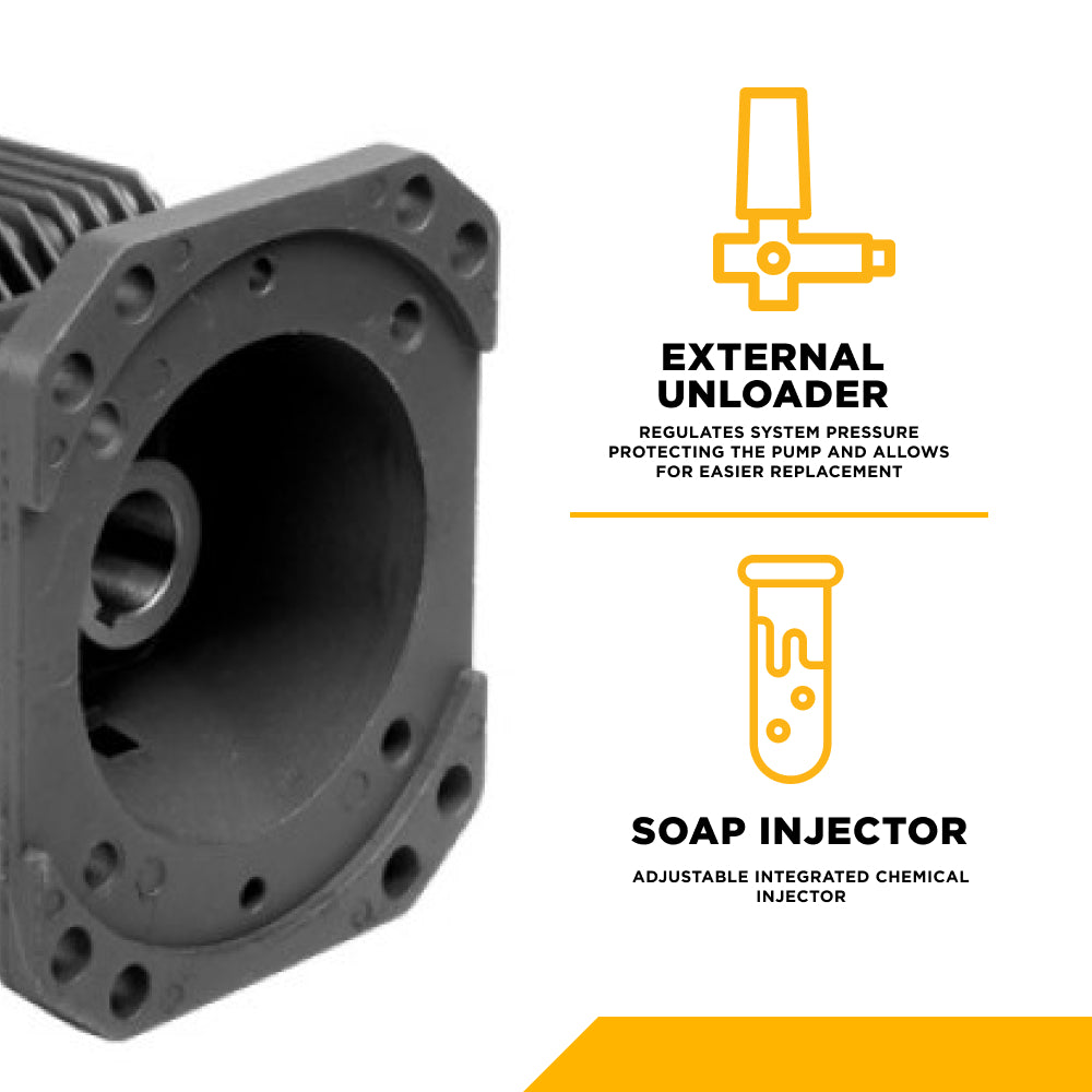The triplex plunger design gives smooth operation, reduced vibration and longer life than axial pumps. With three precision ceramic plungers the pump maintains consistent pressure and superior heat resistance even under extended use.