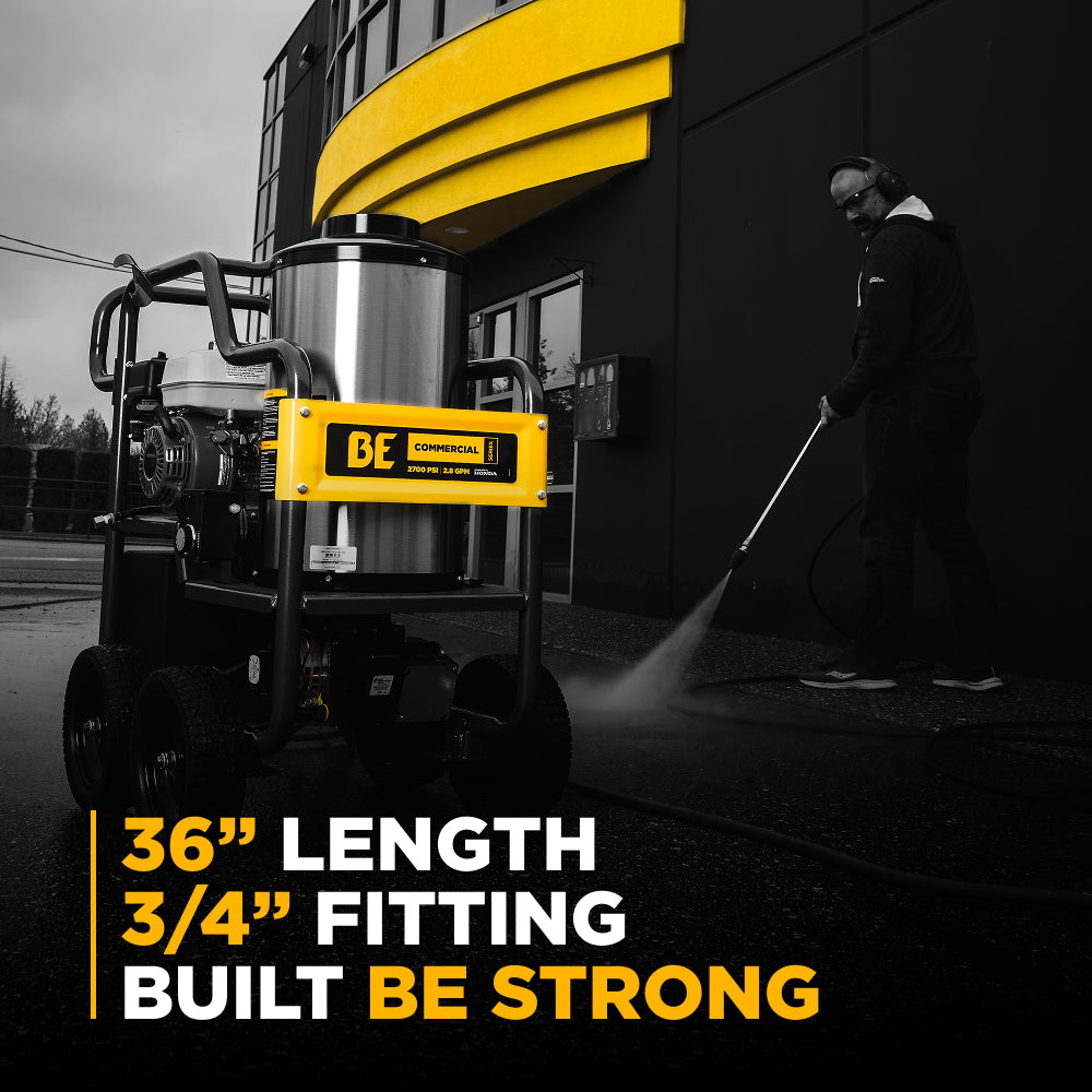 A power washer works by drawing water from a connected hose and pumping it through a high pressure nozzle. The gas engine powers the pump which pressurizes the water and then expels it through the nozzle at high speed to clean the surface. The water pressure is measured in PSI (pounds per square inch) and the flow rate is measured in GPM (gallons per minute).Many models also feature adjustable water pressure settings to cater to different cleaning needs. BE makes pressure washing easy with models available for light jobs and heavy duty commercial cleaning projects.