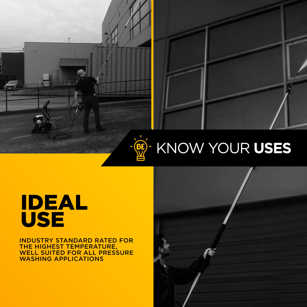 A power washer works by drawing water from a connected hose and pumping it through a high pressure nozzle. The gas engine powers the pump which pressurizes the water and then expels it through the nozzle at high speed to clean the surface. The water pressure is measured in PSI (pounds per square inch) and the flow rate is measured in GPM (gallons per minute).Many models also feature adjustable water pressure settings to cater to different cleaning needs. BE makes pressure washing easy with models available for light jobs and heavy duty commercial cleaning projects.