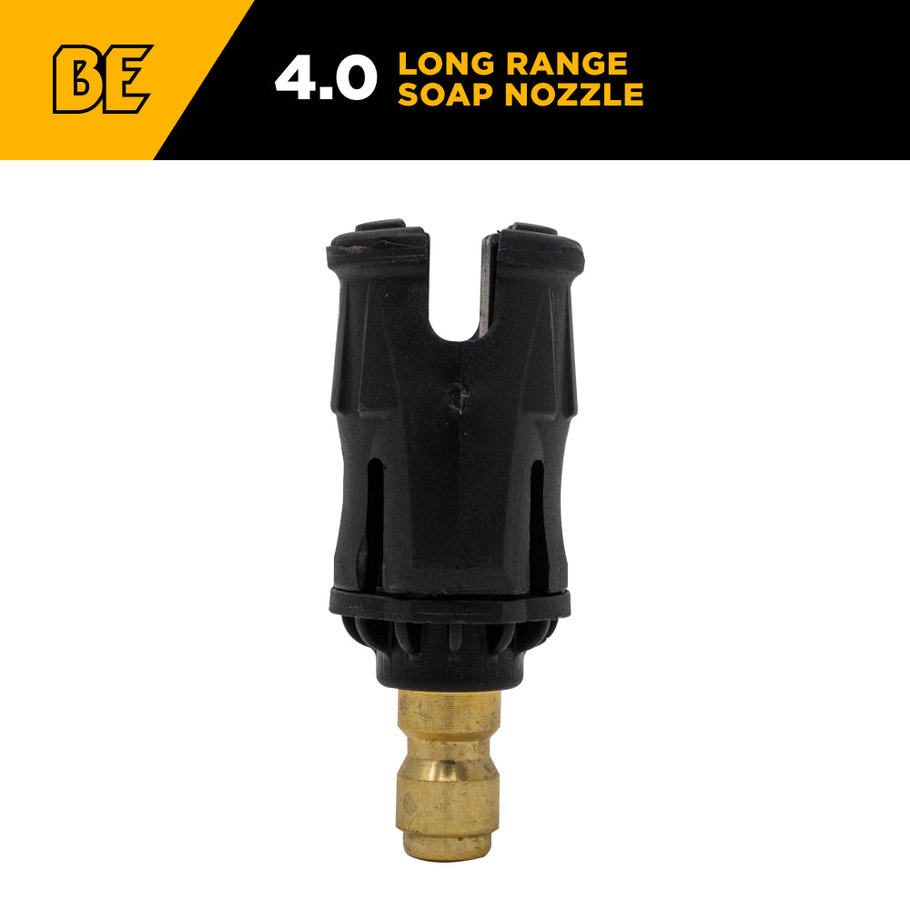 Equipped with a 1/4″ quick-connect fitting, this nozzle snaps securely onto most pressure washer spray guns and wands, offering fast and reliable attachment. The 4.0 orifice is optimized for use with chemical injector systems, delivering consistent low-pressure spray for safe and effective soap or chemical distribution.