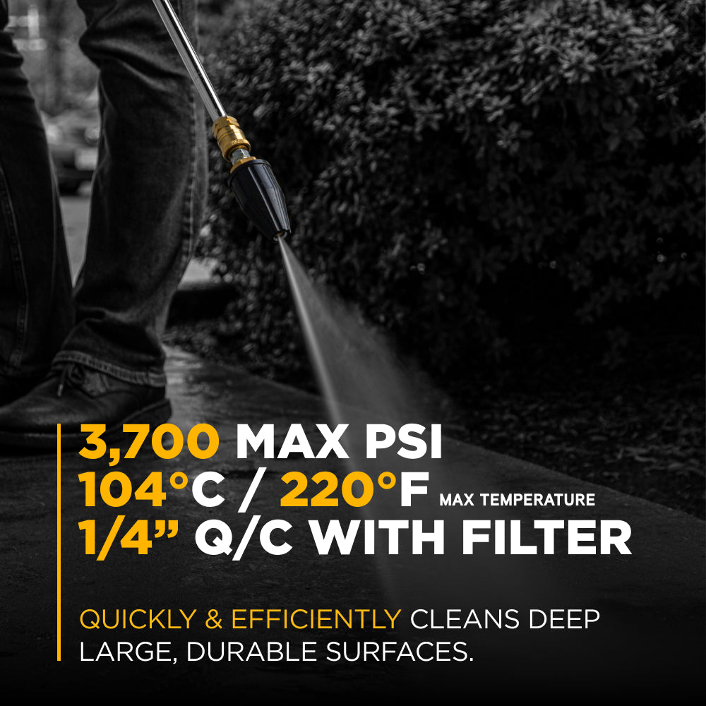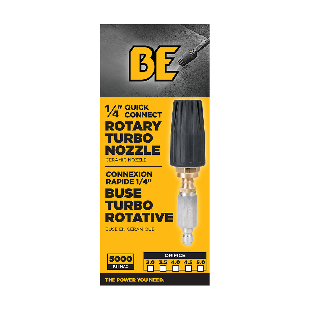 The Rotary 1/4" Quick Connect Pressure Washer Nozzle with a 3.0 orifice is designed for high-efficiency cleaning of hard, durable surfaces. Its unique rotating action combines the power of a zero-degree jet with a circular spray pattern, delivering maximum cleaning force while covering more surface area than a standard nozzle. This makes it especially effective for tough buildup on driveways, sidewalks, patios, and other hardscapes.