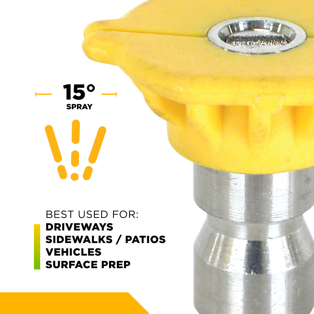 15° Quick Connect Spray Pressure Washer Yellow Nozzle - 9.0 Orifice