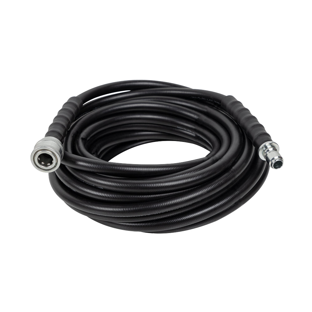 This hose comes equipped with quick connect (QC) crimped ends, featuring a steel coupler and steel plug for fast, tool-free setup. Simply click it into place and get to work—no threading, no downtime.