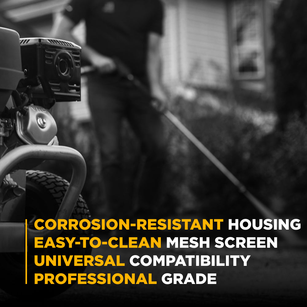 • Protects Equipment: Filters out debris, sediment, and contaminants before they reach your pressure washer or pump.
