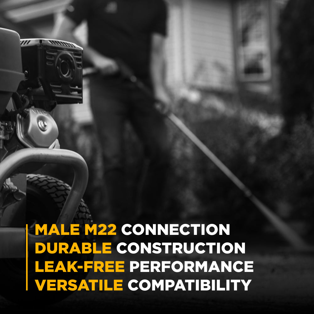 Upgrade your pressure washer setup with the Male M22 x 3/8" Quick Connect MNPT Coupler—engineered for speed, strength, and long-lasting performance.