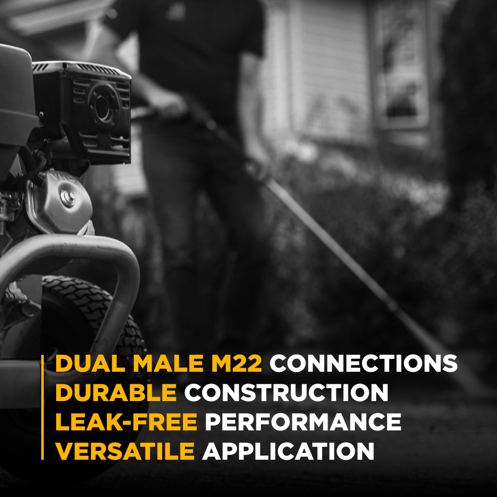 Dual male M22 connections – provides versatile compatibility with hoses, guns, and wands.