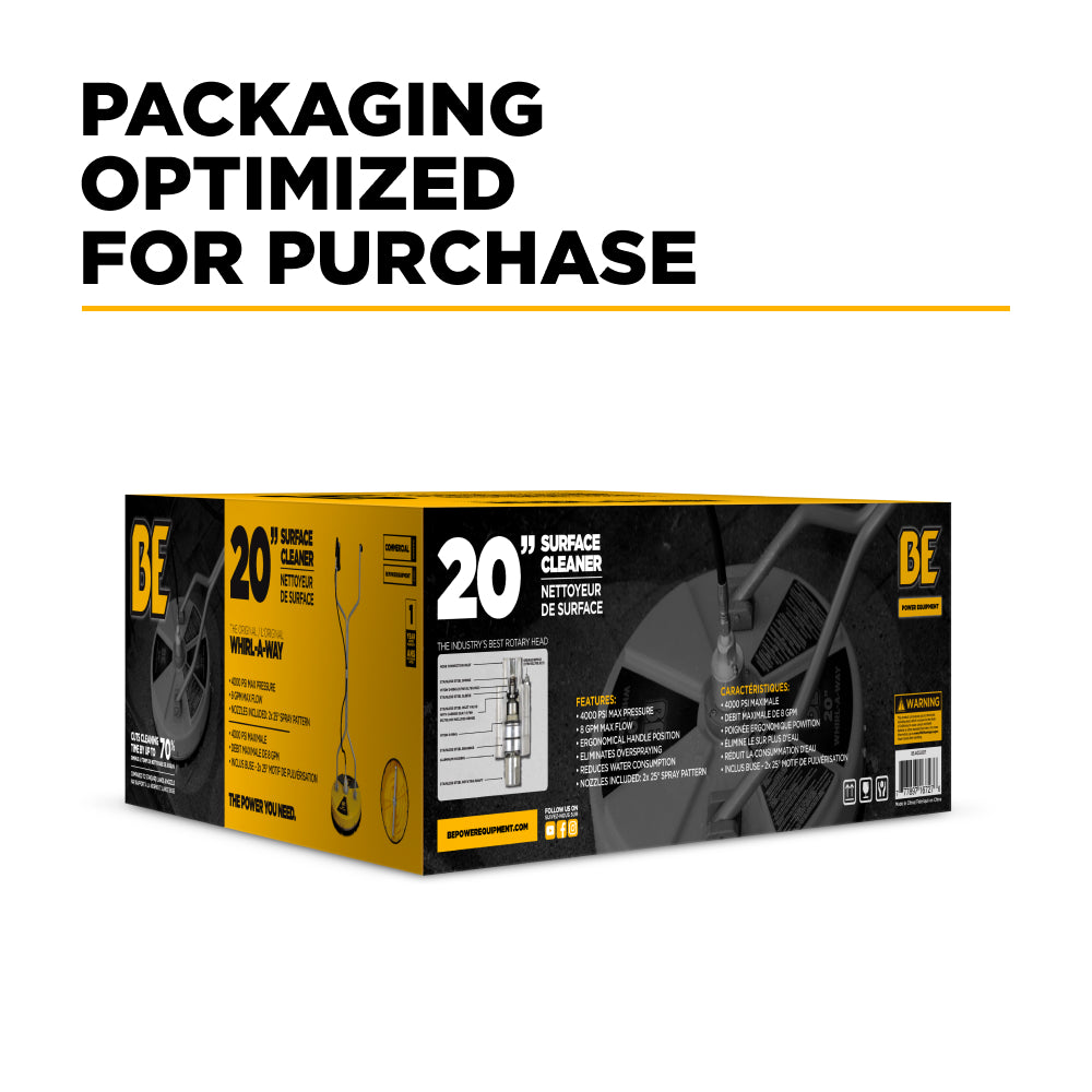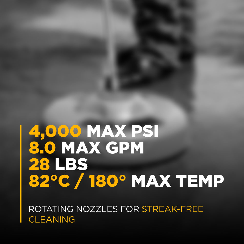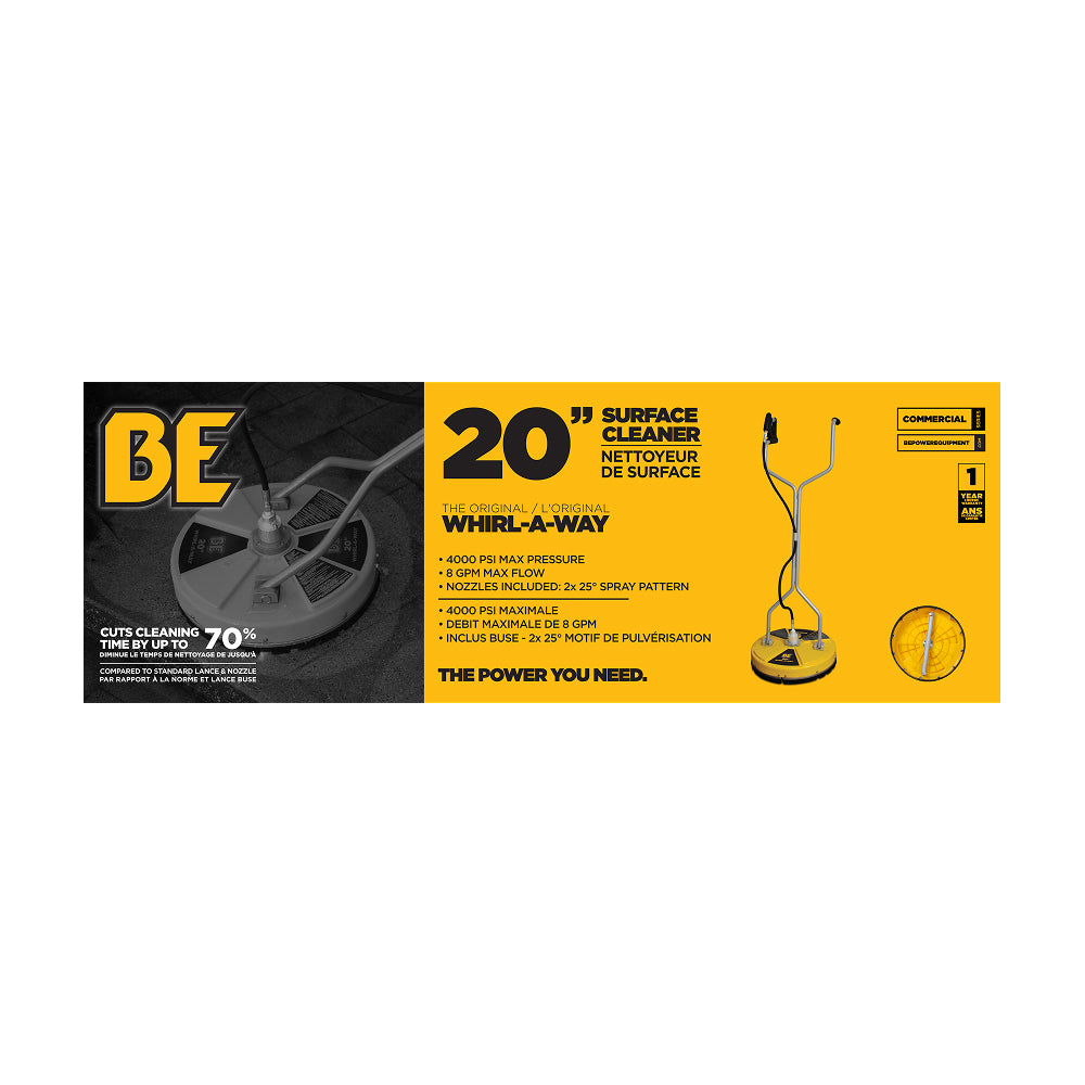 Compatibility: Works with most gas-powered pressure washers rated from 2500 to 4000 PSI and up to 4 GPMThe 20” Whirl-A-Way Pressure Washer Surface Cleaner is the tool for fast, professional surface cleaning. With its 20” cleaning path, two high-speed jets, ergonomic handle system and floating hover design it’s the most efficient tool out there. Whether you’re cleaning residential sidewalks or commercial parking lots this tool will cut your cleaning time in half and deliver results that shine. For the features and performance you get the 20” Whirl-A-Way is a great value.