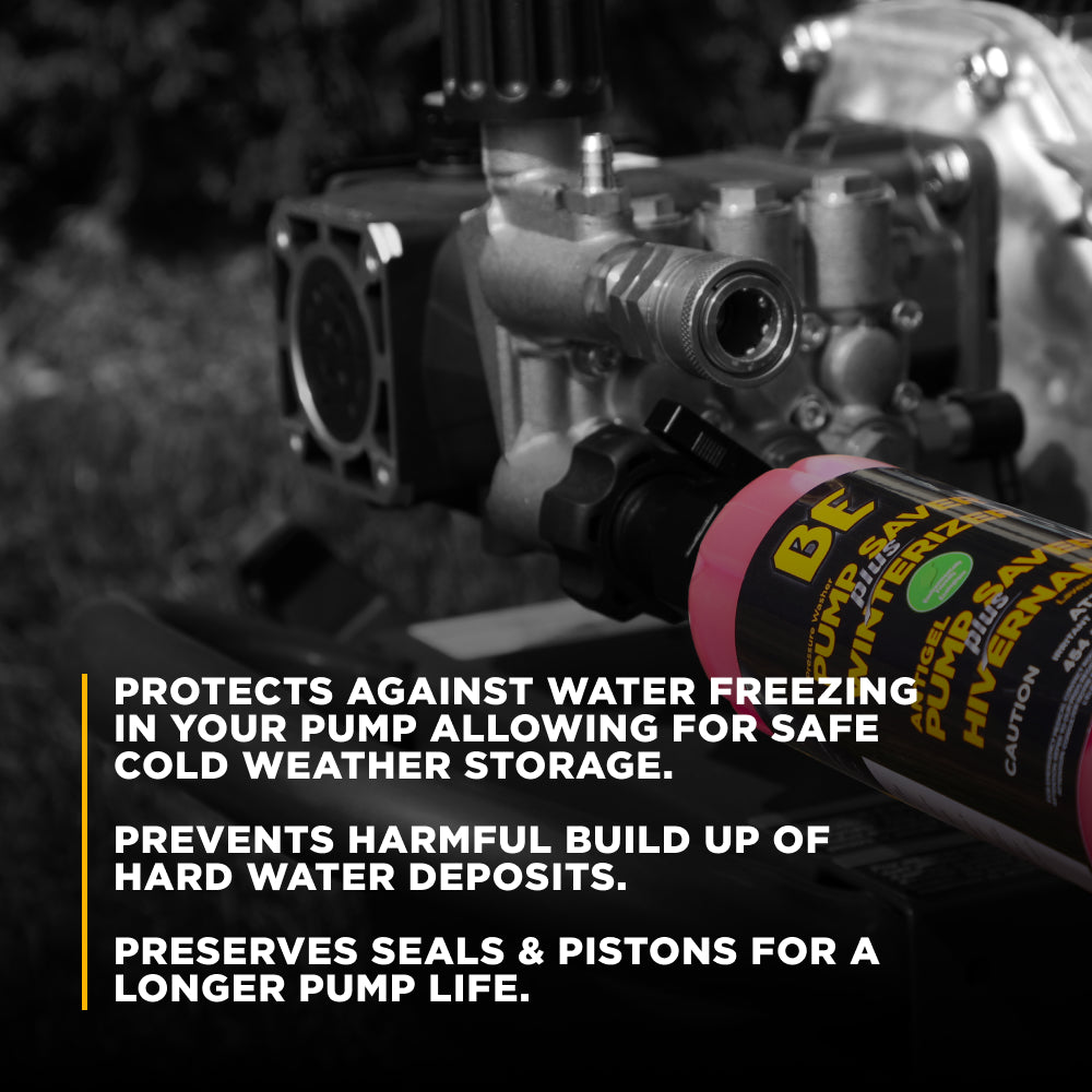 The BE Pressure Washer Pump Saver is an essential tool for protecting your equipment and extending the life of your pressure washer pump. With a powerful yet eco-friendly formula, it offers industry-leading freeze protection, corrosion resistance, and seal lubrication — all in a quick and easy application.