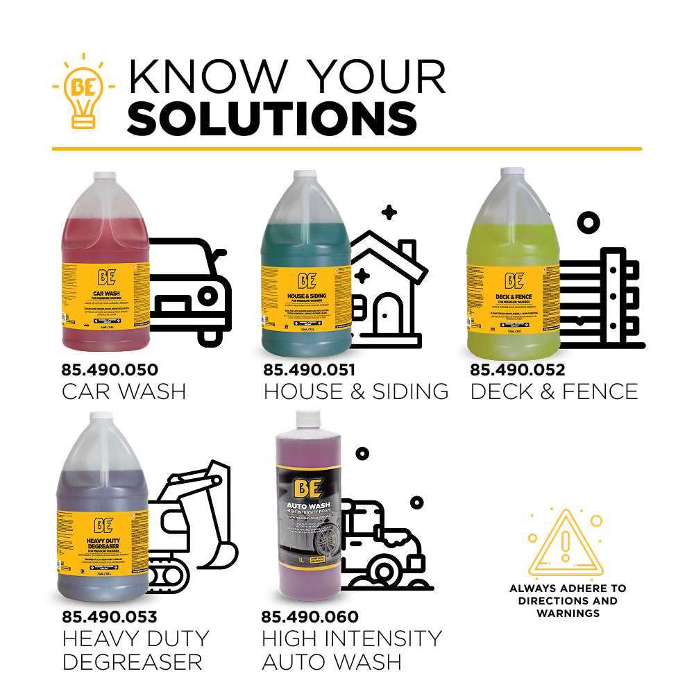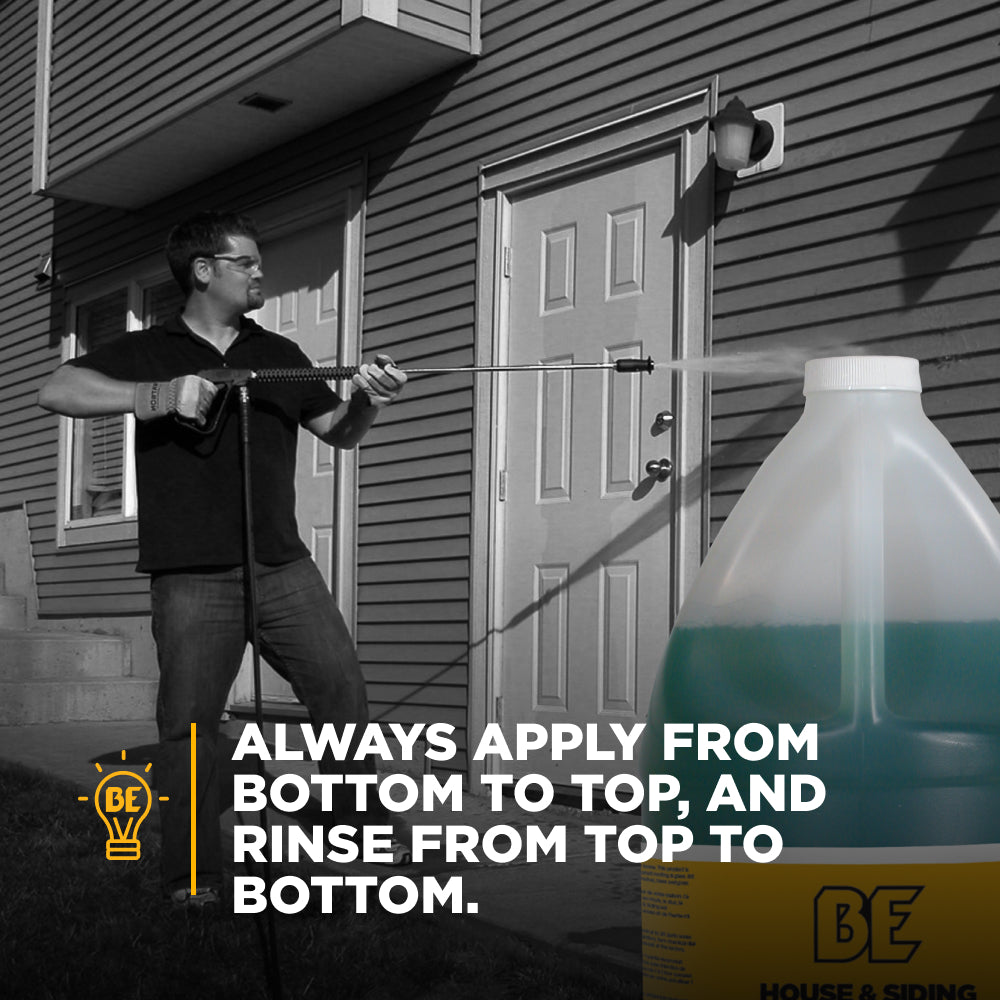 To get the most from your BE Pressure Washer House and Siding Detergent, follow these simple guidelines: