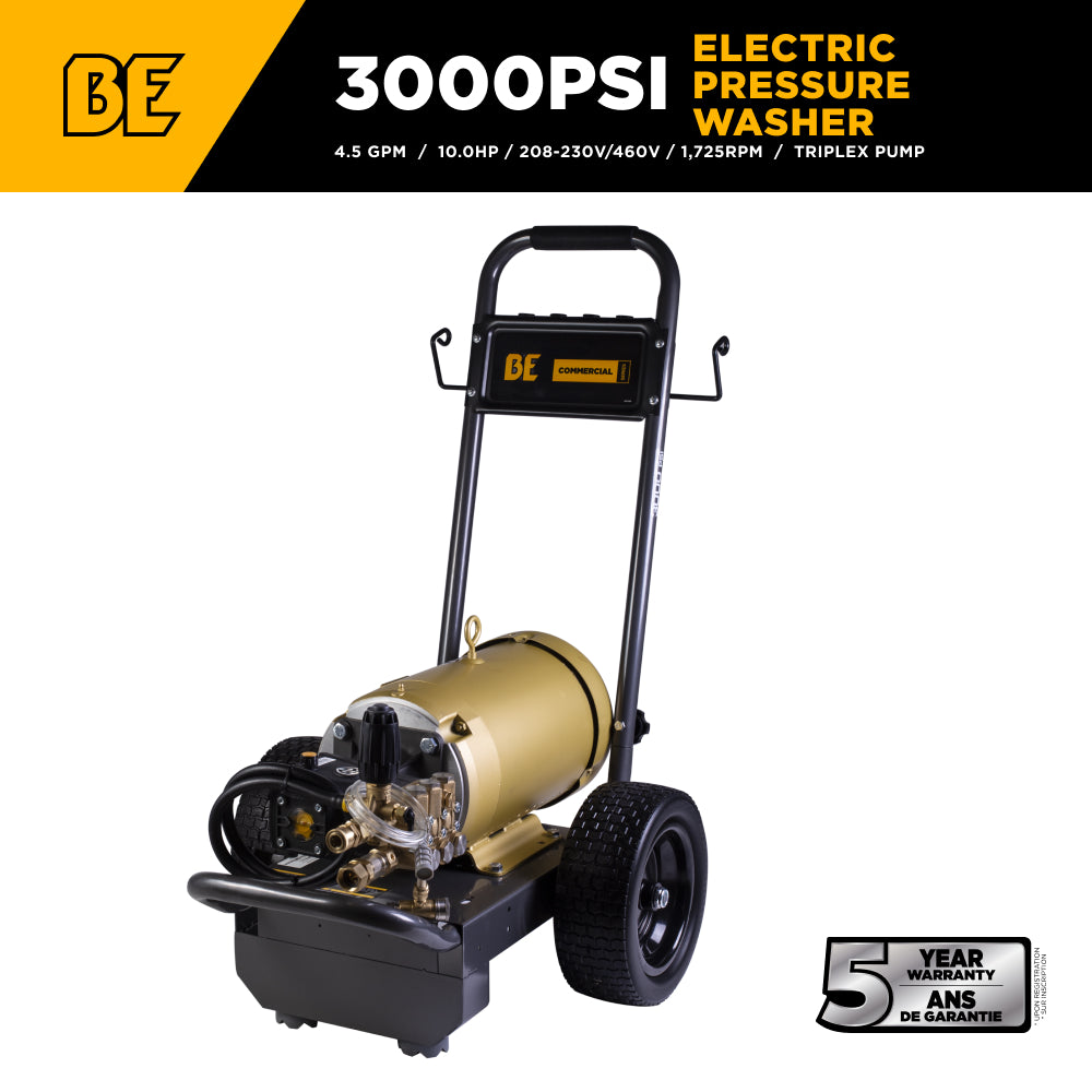 When your work demands power, precision, and no-nonsense reliability, the BE Power Equipment B3010E34AHE is your electric pressure washer of choice. It’s been engineered to deliver uncompromising results with components that meet the toughest professional standards. Backed by BE’s commitment to quality and innovation, this unit is built to deliver dependable performance—day in, day out.