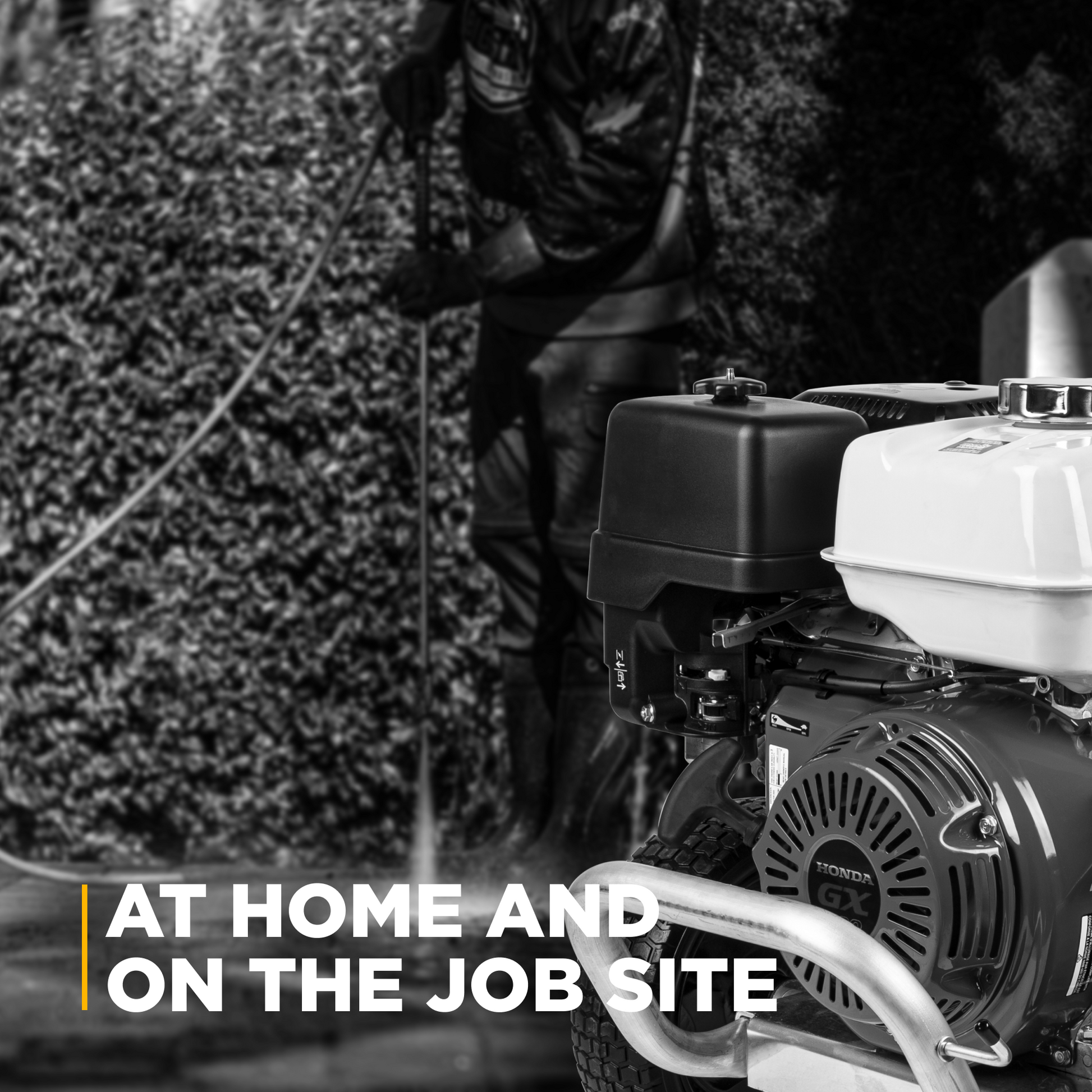 Powered by a Honda GX390 engine, making the pressure washer capable of handling tough cleaning tasks