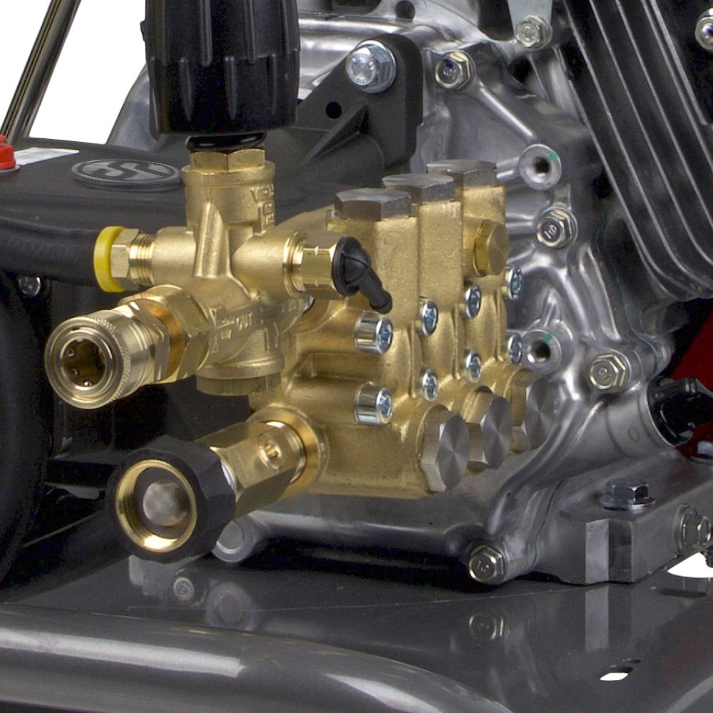 The large capacity fuel tank provides longer runtime, an automatic low oil shutdown shuts the engine off if your oil is low and a thermal relief valve on the pump that dumps built-up hot water if you happen to leave your pressure running and unattended. Featuring a durable, hand truck frame design and large 12 in. flat-free wheels this pressure washer is designed for easy transport.