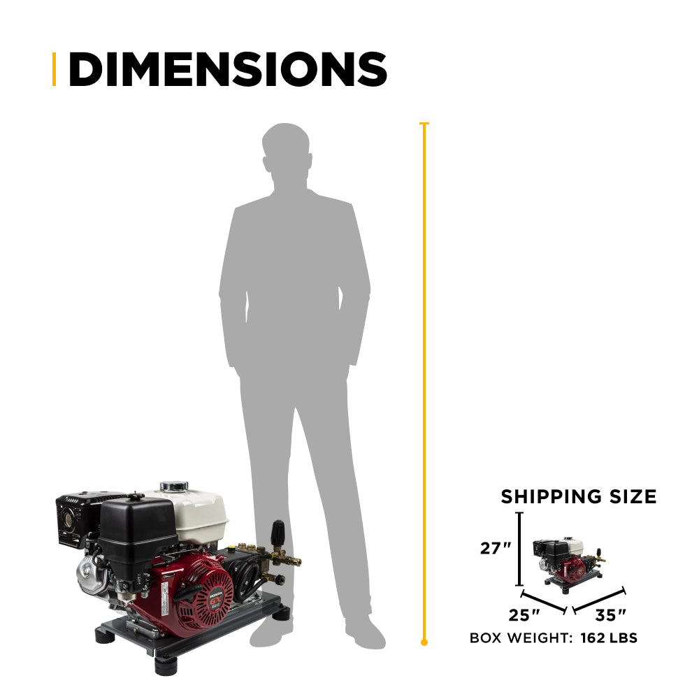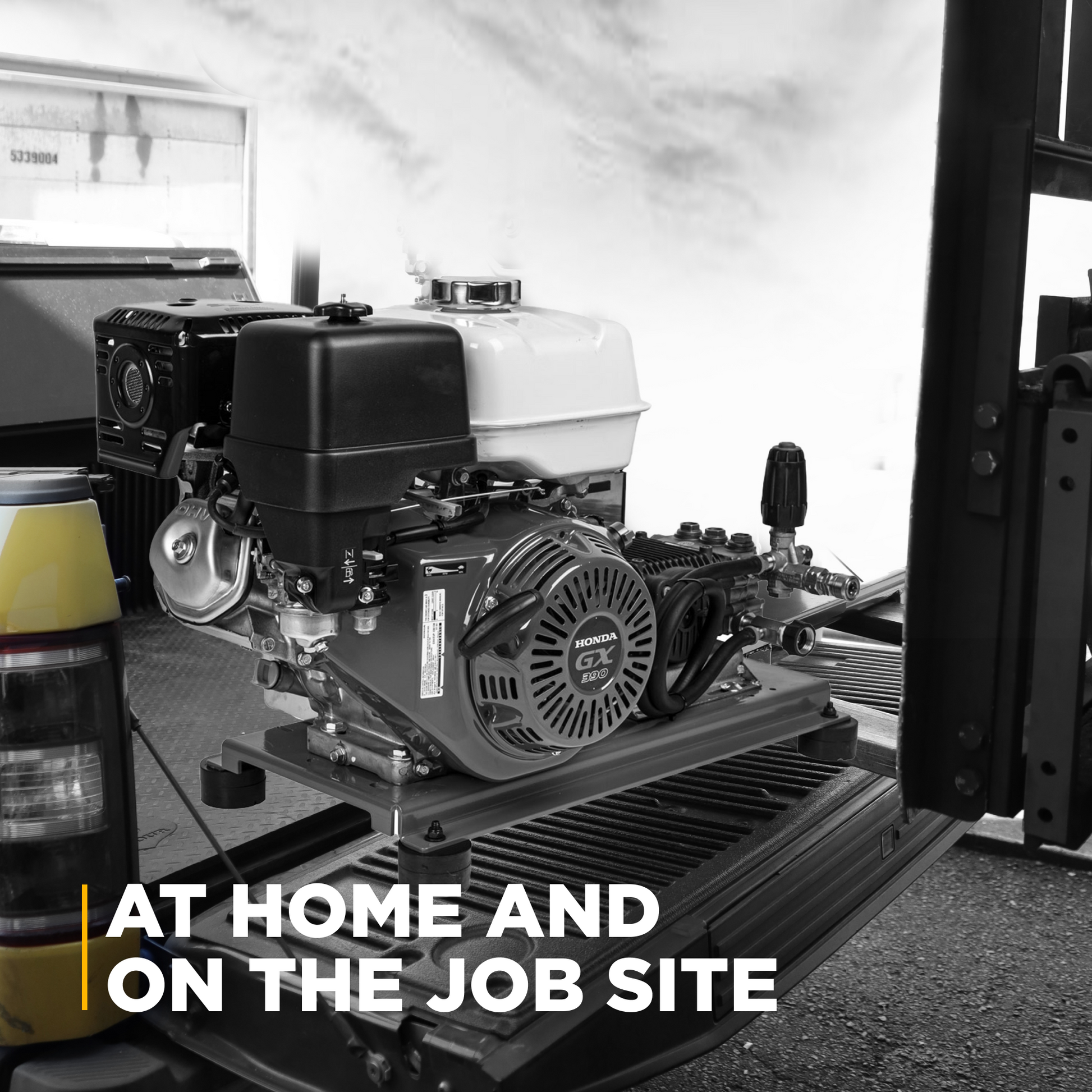 This BE Power Equipment B4213HTBGS 4200PSI/4.2GPM Truck Mount Pressure Washer is engineered with anti-vibration pads and bolts directly to a truck or trailer. Powered by a Honda GX390 engine delivering 4200PSI for tackling your toughest job.