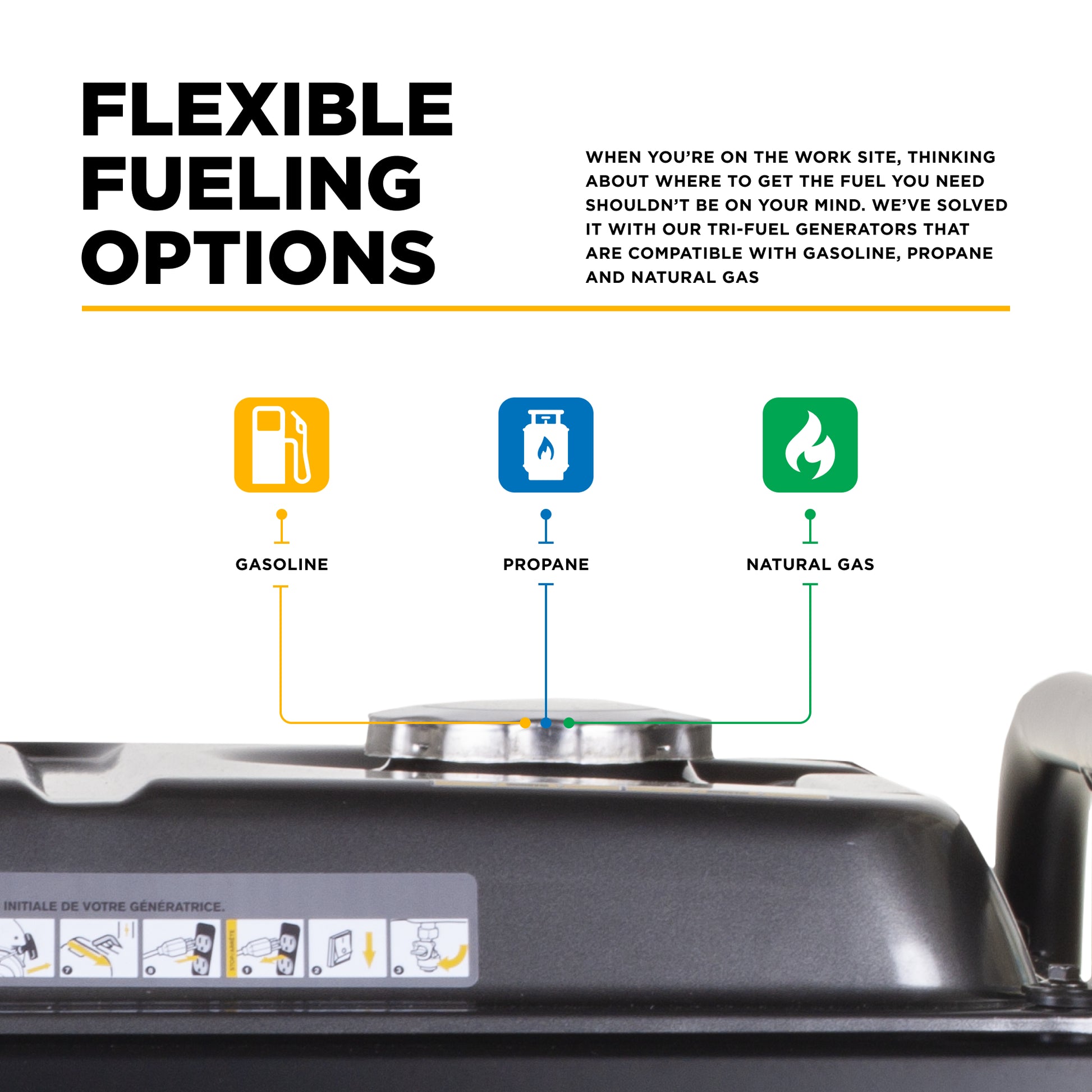Powerful and versatile generator that can use gasoline or propane as a fuel source.