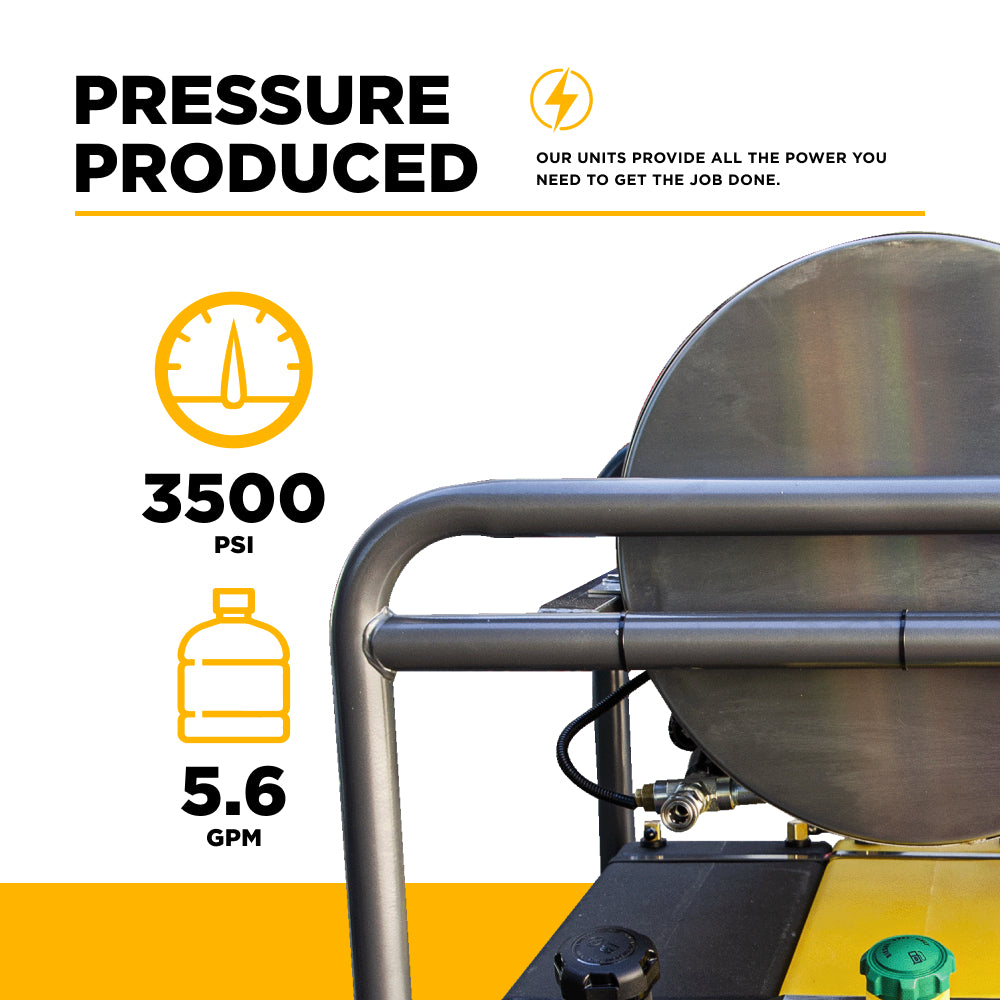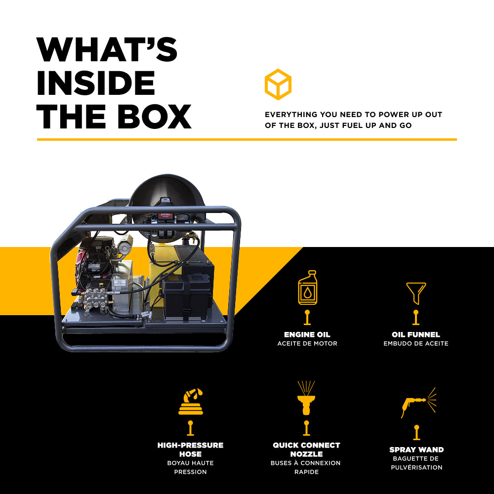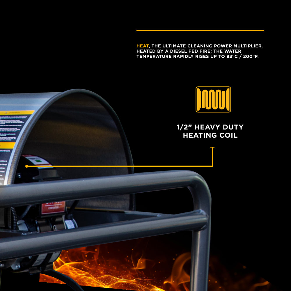 High-pressure is only part of the equation. When you're faced with thick grease, industrial grime, or sanitation-sensitive environments, you need volume and heat. With a 5.6 GPM flow rate, this washer clears debris fast—while the 12V Beckett burner heats water up to 200°F, making it far more effective at breaking down oil, fuel residue, and heavy dirt.