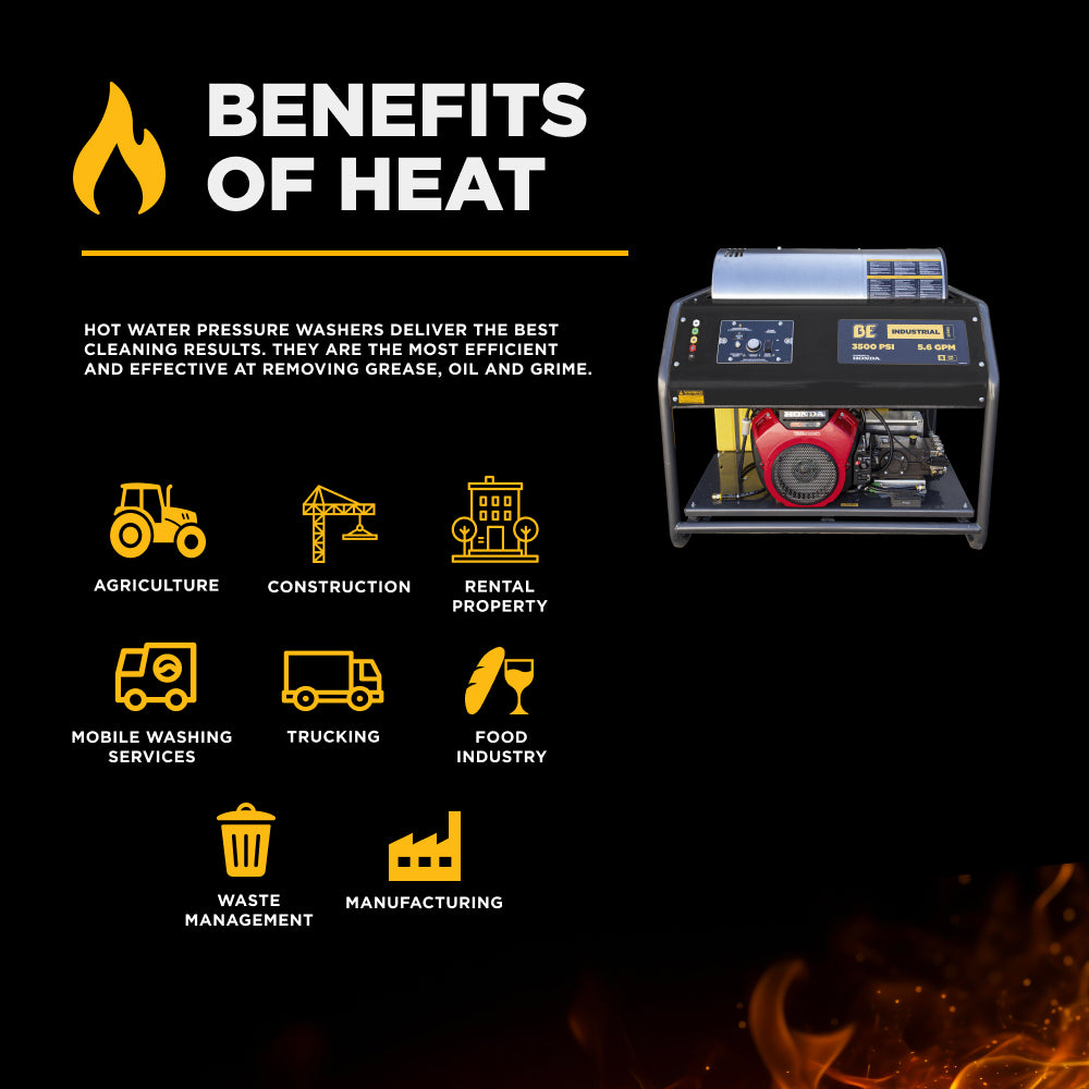 The HW3524HG12V is built for professionals who rely on their equipment every day. Its high flow, high temperature, and heavy-duty construction make it perfect for: