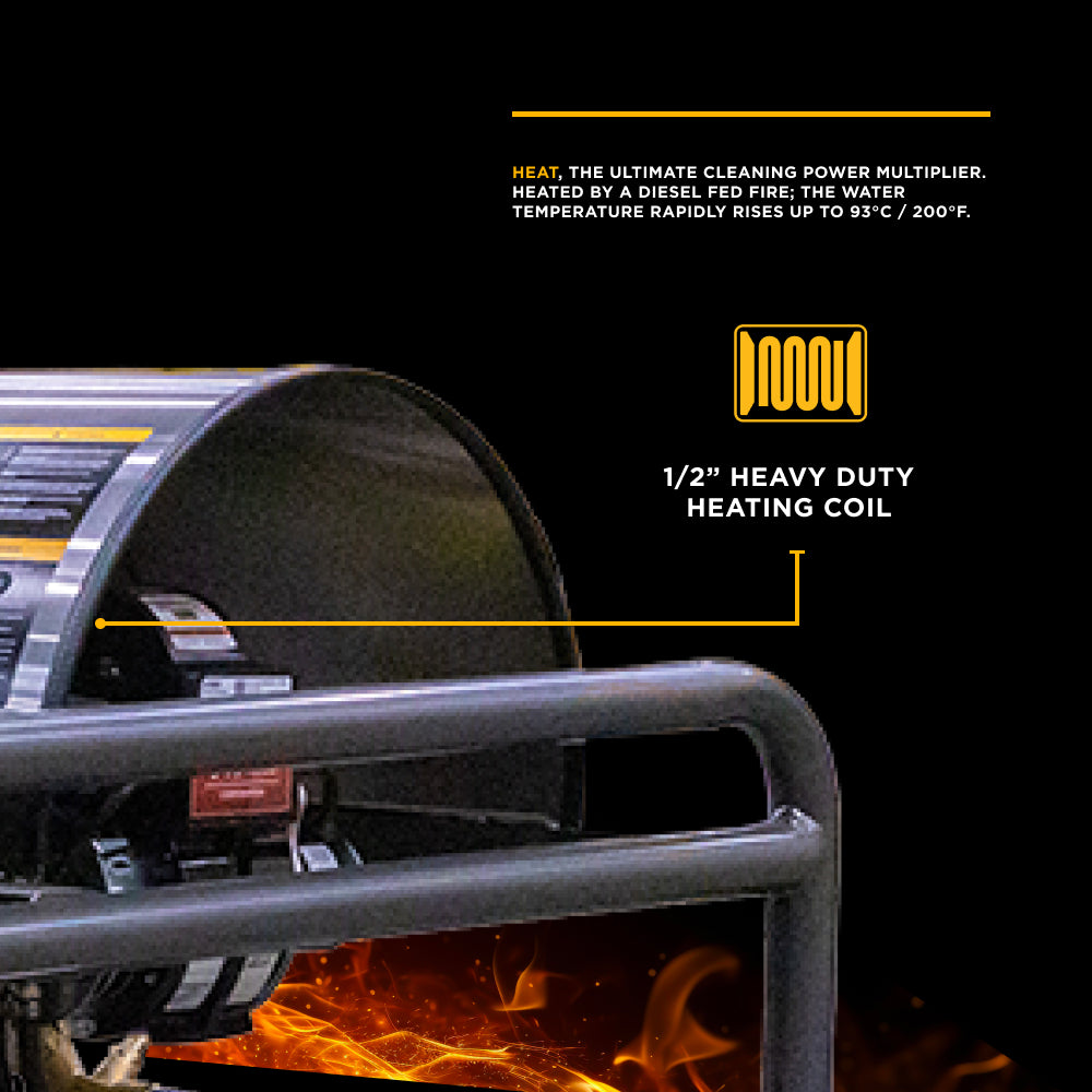 Not all pressure washers are built the same—and when you're working with grease, oil, or baked-on residue, cold water just won’t cut it. That’s where the HW4024HA12V shines. The 12V Beckett burner powers a robust heating coil fueled by diesel, giving you water temperatures of up to 200°F (93°C). This scalding heat breaks down contaminants fast, reduces chemical use, and speeds up your workflow.
