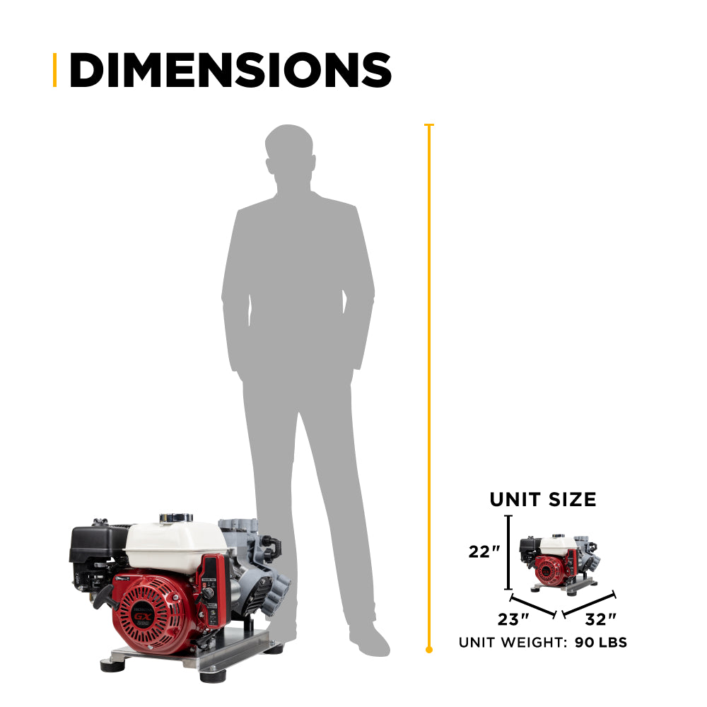 A power washer works by drawing water from a connected hose and pumping it through a high pressure nozzle. The gas engine powers the pump which pressurizes the water and then expels it through the nozzle at high speed to clean the surface. The water pressure is measured in PSI (pounds per square inch) and the flow rate is measured in GPM (gallons per minute).Many models also feature adjustable water pressure settings to cater to different cleaning needs. BE makes pressure washing easy with models available for light jobs and heavy duty commercial cleaning projects.