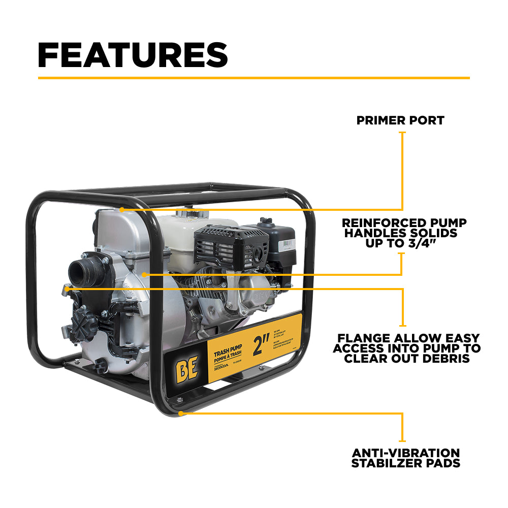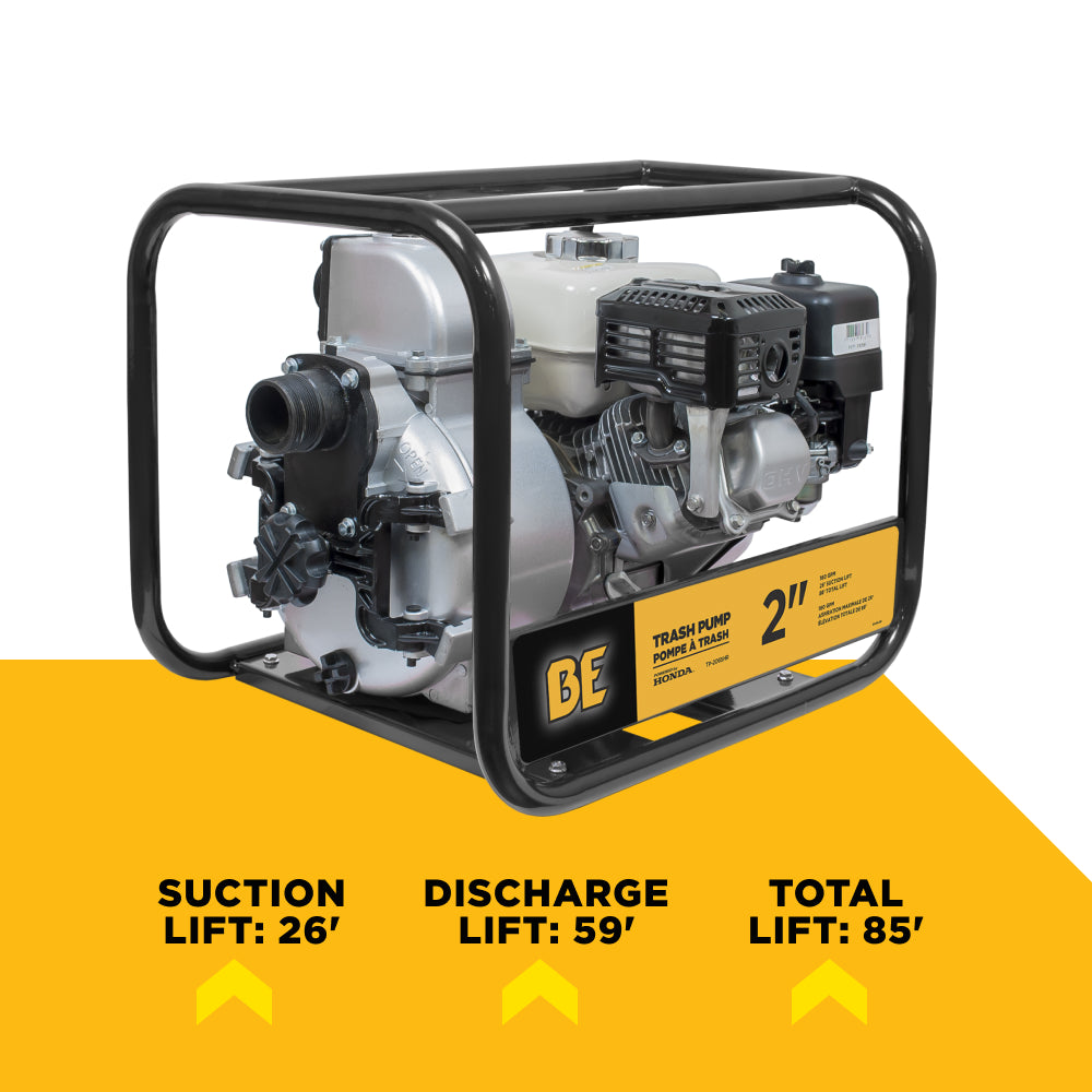 Heavy-duty, reinforced trash pump that will handle water with dirt, grit and rocks.