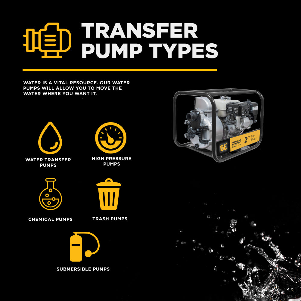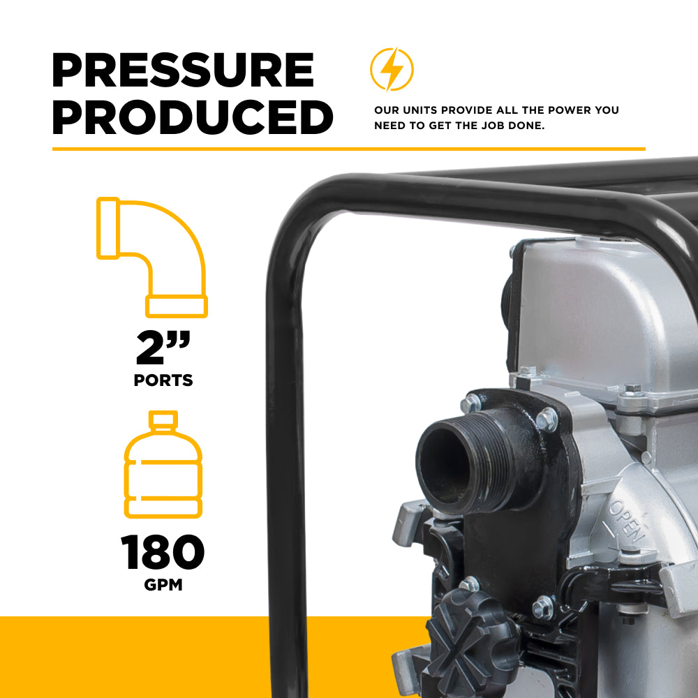 Heavy-duty reinforced aluminum pump body and cast iron impellers can handle solids up to 3/4” making this pump ideal for moving dirty water.