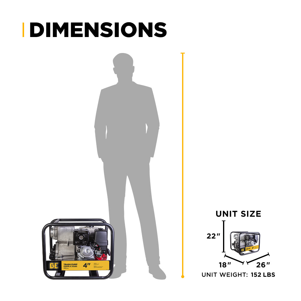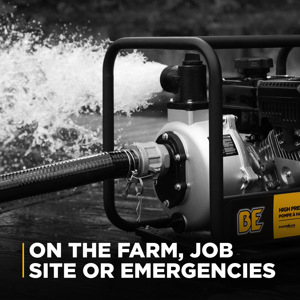 Heavy-duty reinforced aluminum pump body and cast iron impellers can handle solids up to 1" making this pump ideal for moving dirty water.