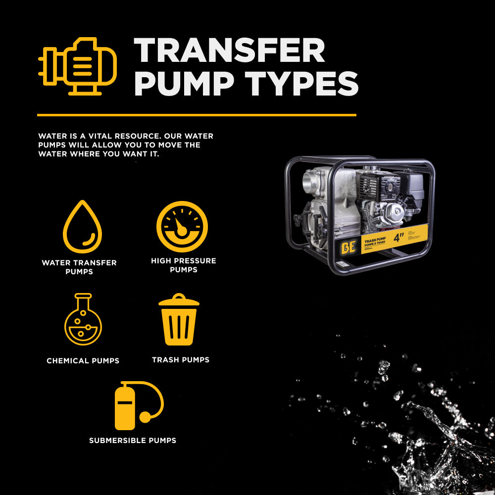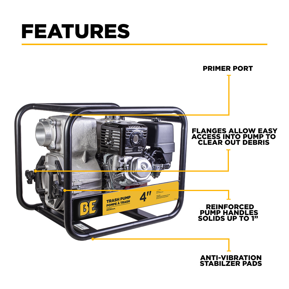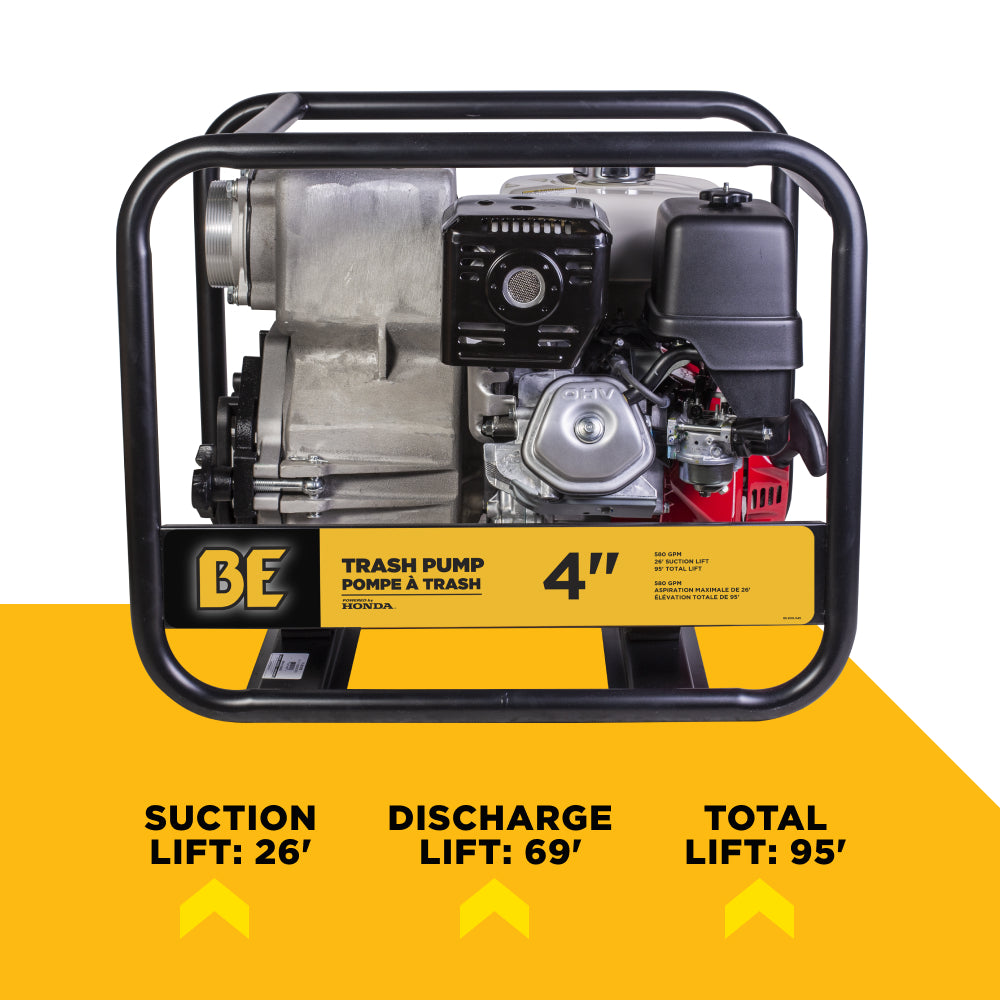 Heavy-duty, reinforced trash pump that will handle water with dirt, grit and rocks.