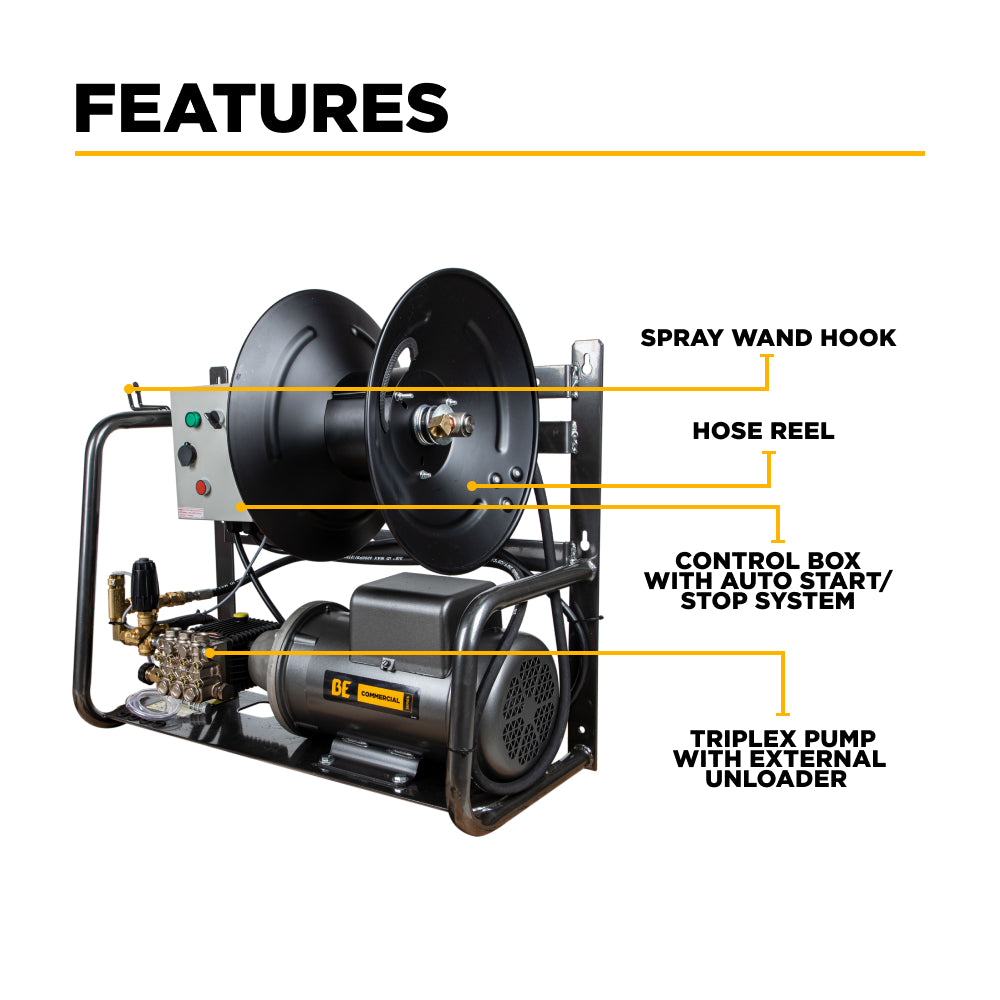 With its direct drive, external unloader, hose reel and wall-mounted steel frame, the X-2050FW3GENHT2 is designed to deliver hot water cleaning power in a space-saving, fixed-installation package.